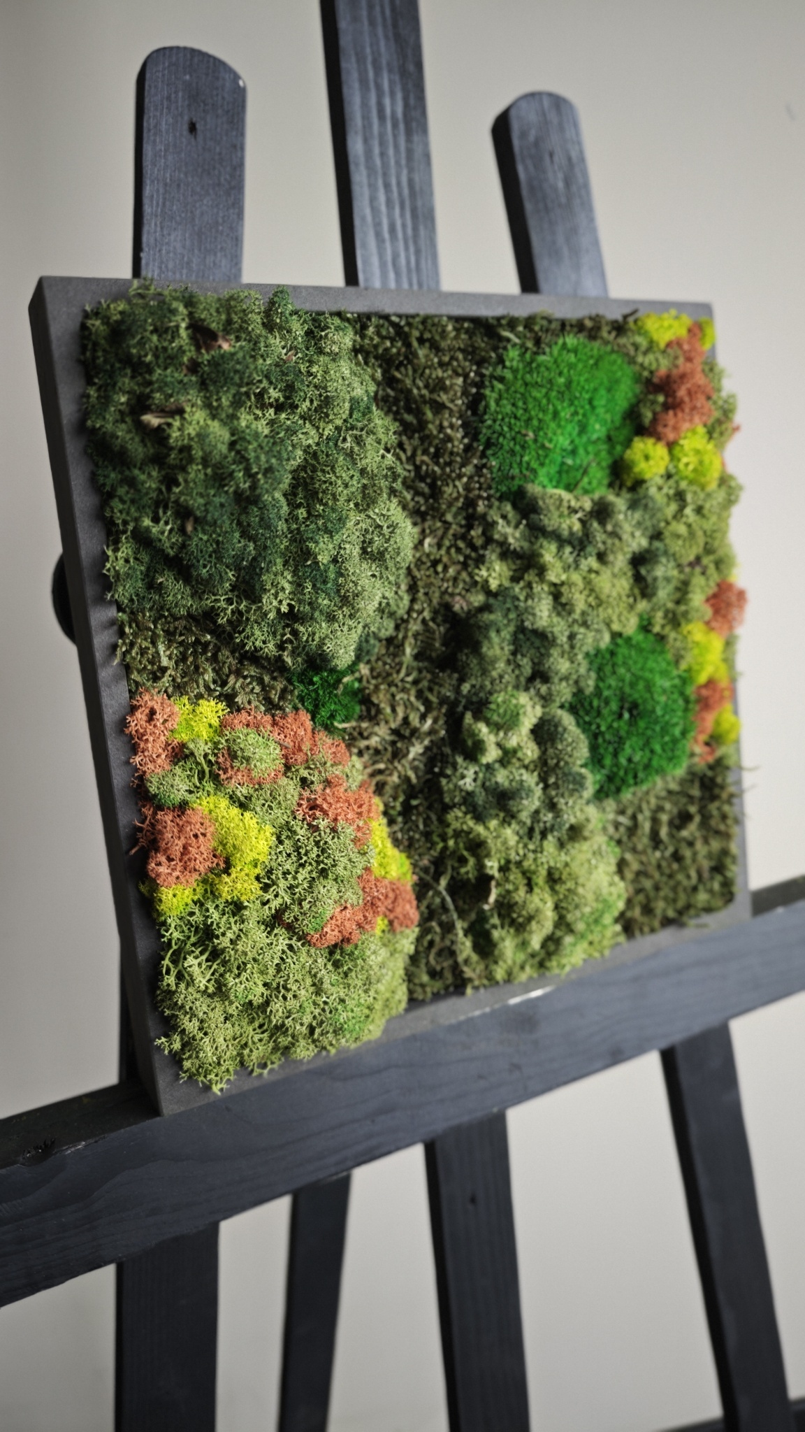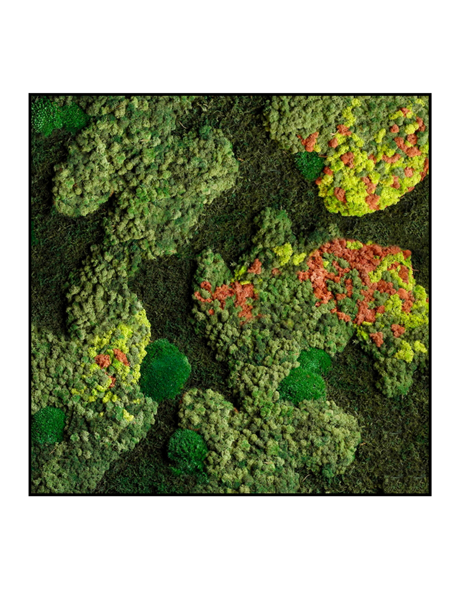 Moosbild Kaisa ist ein wunderschönes Moosbild, das die Natur auf einzigartige Weise in Ihr Zuhause bringt. Dieses Moosbild besteht aus einem Moosmix aus Flachmoos, Kugelmoos und Rentiermoos. Durch die Verwendung der beiden kräftigen Akzentfarben Persici-Rot und Hellgrün entsteht ein lebhaftes Moosbild. Der tiefe Kontrast des Moosbildes wird durch das dunkle Flachmoos noch betont. Perfekt für einen Hauch von Natur in jedem Raum!