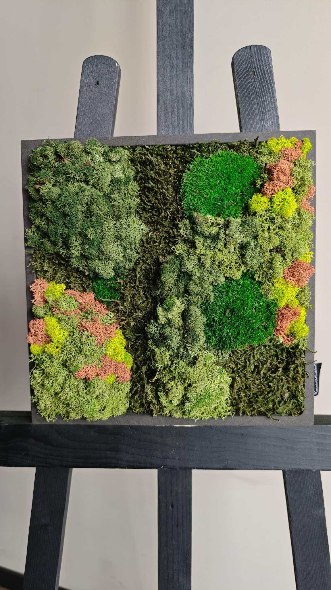 Die Abbildung zeigt ein Beispiel eines quadratischen Moosbilds in der Größe 100 x 100 cm. Da es sich um ein Naturprodukt handelt, ist jedes Moosbild ein Unikat. Das gelieferte Moosbild kann daher leicht vom gezeigten Muster abweichen. Benötigen Sie eine andere Größe? Kontaktieren Sie uns gerne unter [email protected]