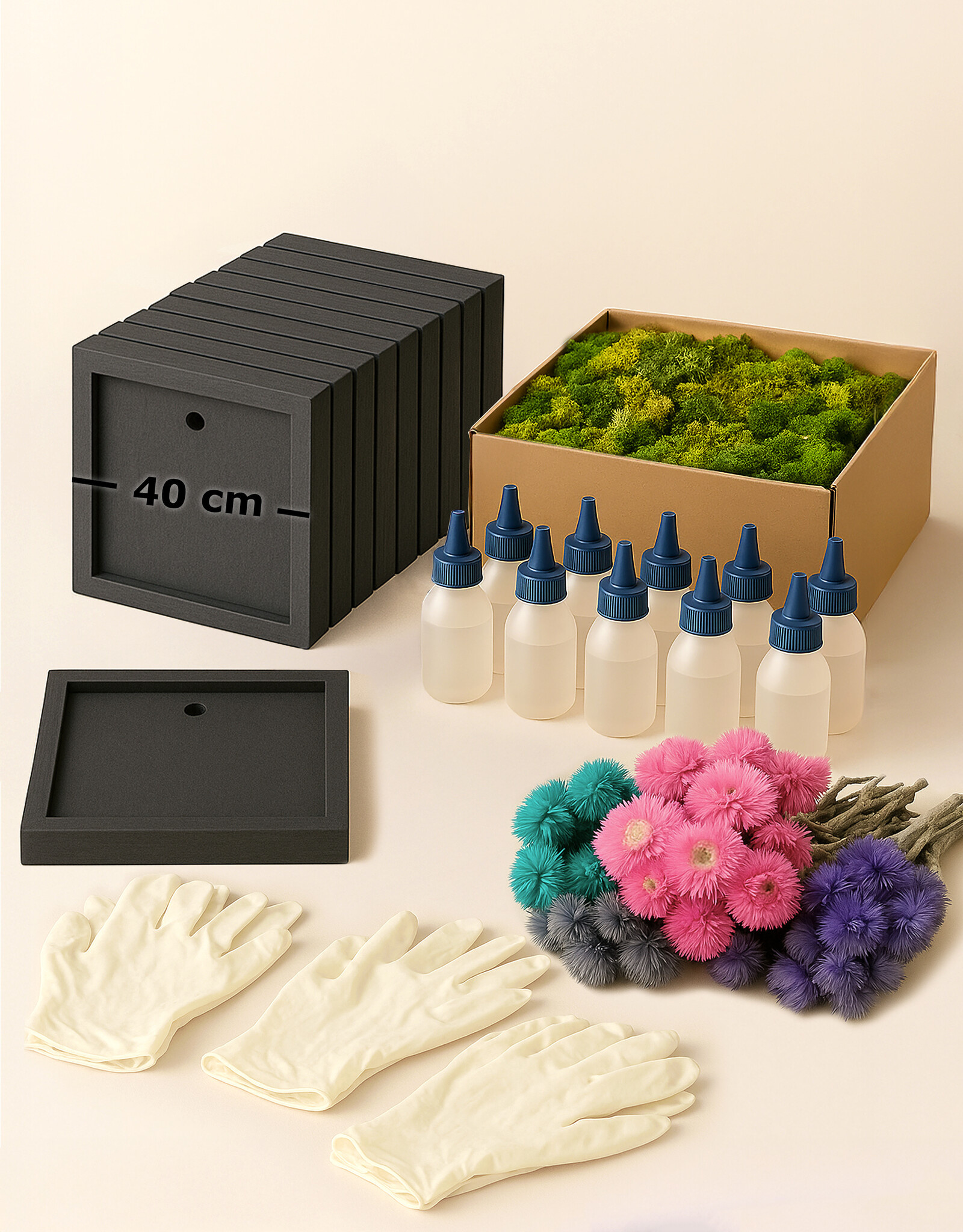 DIY Moosbild Set für 10 Personen – Rechteckig 40 cm – Blumen