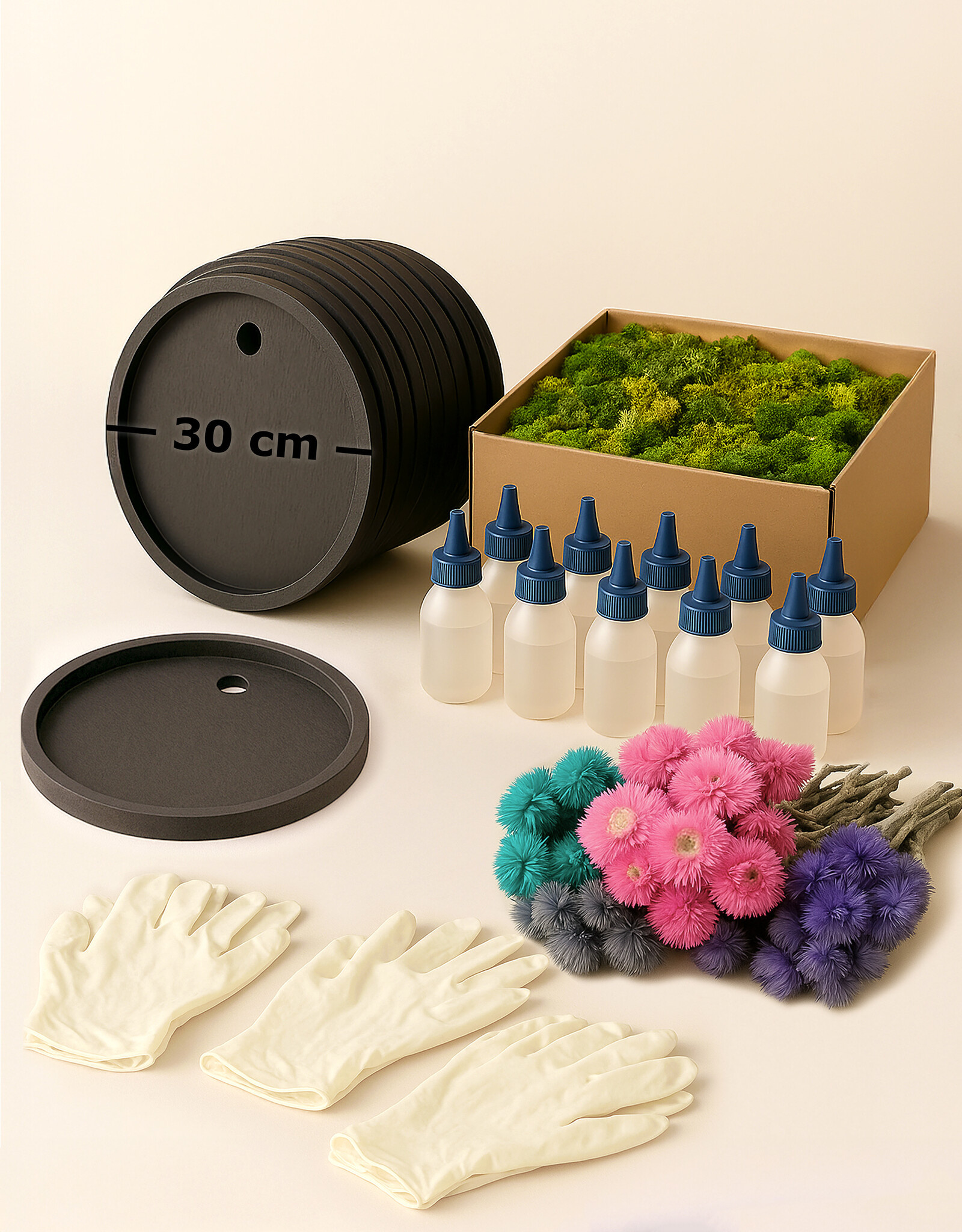 DIY Moosbild Set für 10 Personen – Rund 30 cm – Blumen