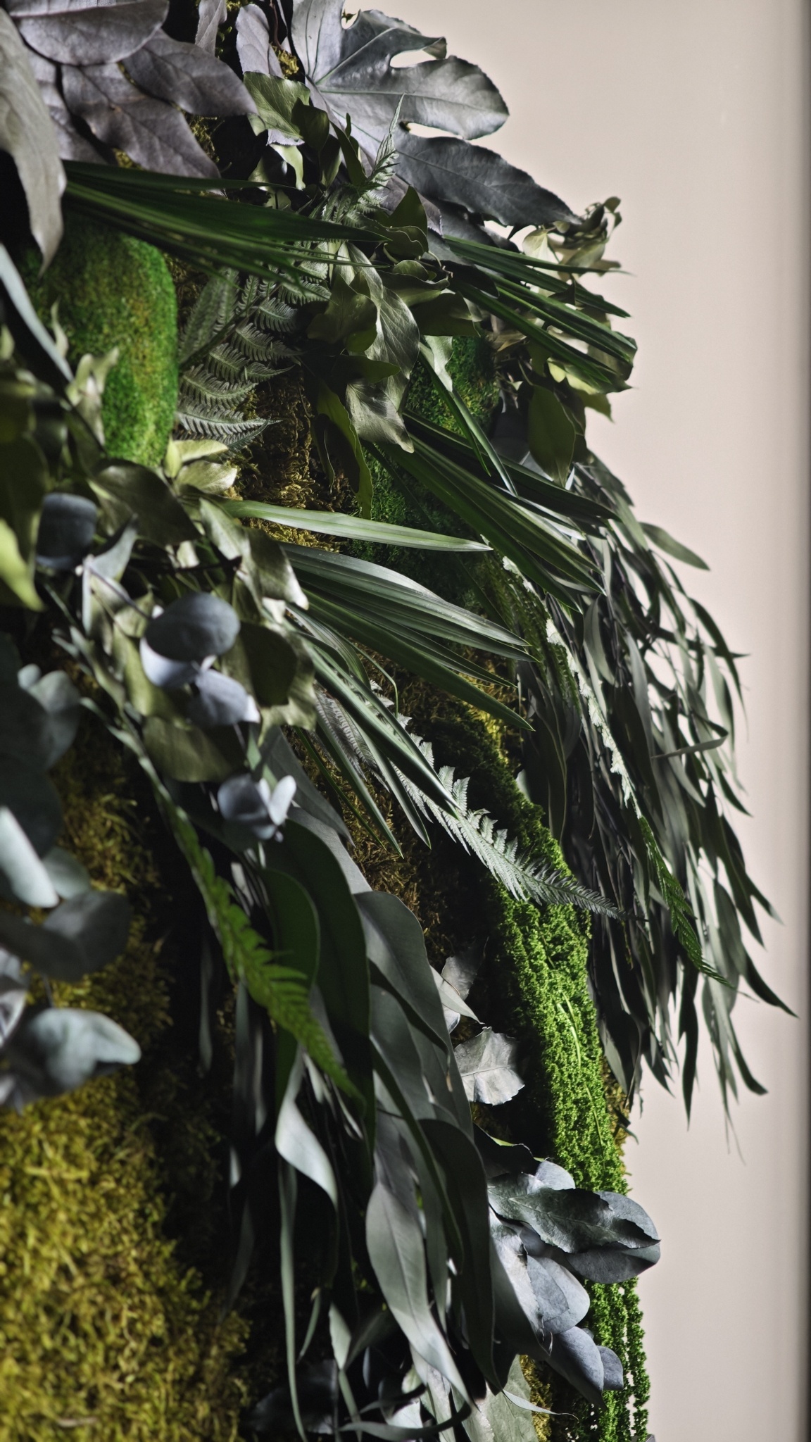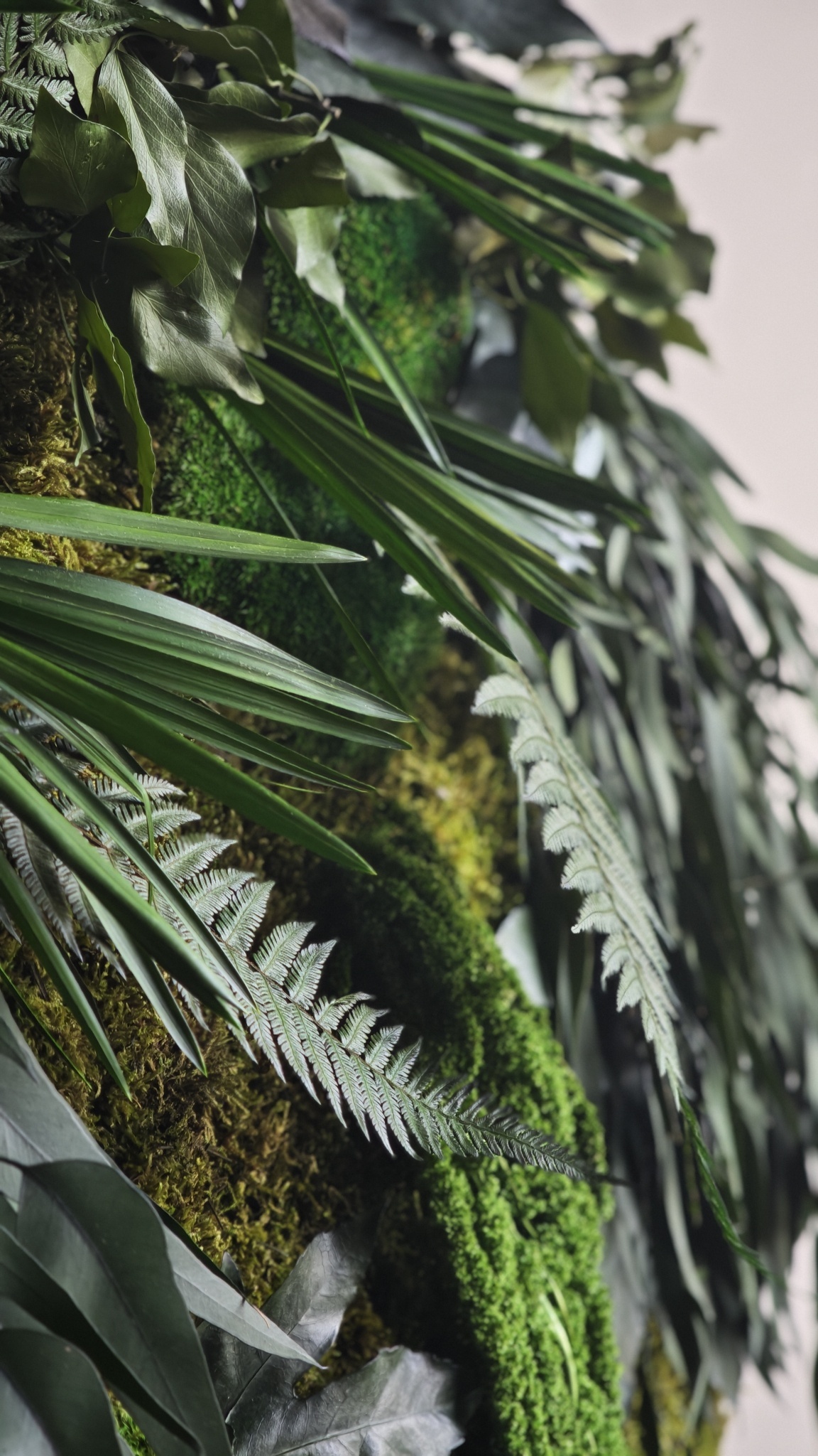 Das verwendete Moos und die Pflanzen sind ein 100%iges Naturprodukt und erfordern 0% Pflege. Zu den Eigenschaften und Vorteilen gehören: hohe Schallabsorption, feuerhemmend (imprägniert), sehr farbecht, kein Tageslicht, schmutzabweisend (antistatisch) und da das Moos und die Pflanzen nicht mehr lebendig sind, ist keine Pflege wie Gießen, Beschneiden oder Düngen erforderlich. Die Kreationen sind wunderschön, fühlen sich weich an und haben eine große Anziehungskraft. Unsere Moose und Pflanzen sind von höchster Qualität und garantieren eine sehr lange Lebensdauer (10-20 Jahre).