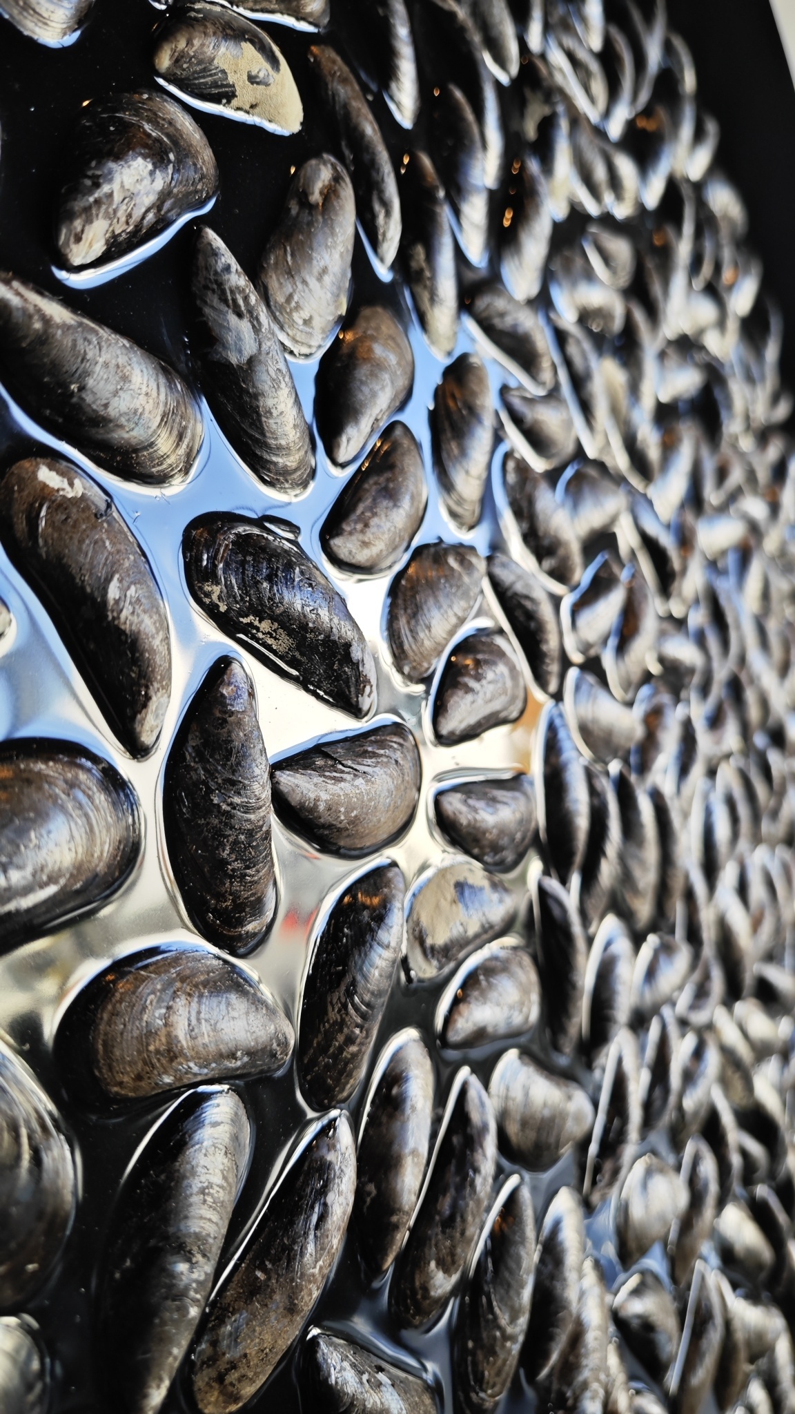 Der Muschelkreis ist wunderschön und absolut einzigartig. Die Kombination aus den echten Muscheln und der dunklen Epoxyschicht wirkt edel und natürlich zugleich. Der schwarze Stahlrahmen rundet das Design perfekt ab. Ein echtes Highlight an der Wand.