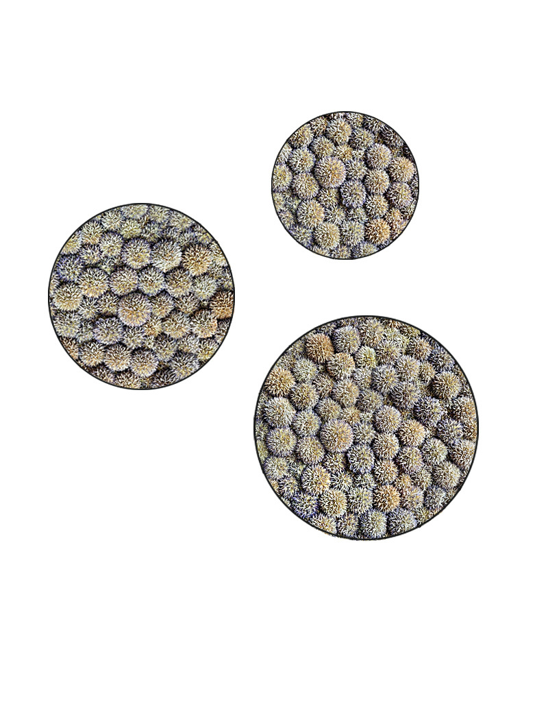 Der Echinops stil ist ein einzigartiges und stilvolles Dekorationsstück, das eine moderne und natürliche Ausstrahlung vereint. Diese kreisförmige Kreation, verziert mit den wunderschönen, kugelförmigen Blüten der Echinops (Kugeldistel), bringt einen Hauch von Eleganz und Textur in jeden Raum. Der Stahlrand verleiht dem Design ein schlankes, industrielles Finish und macht es perfekt für moderne wie rustikale Interieurs. Ein echter Hingucker für Liebhaber natürlicher Schönheit und zeitloser Designs.