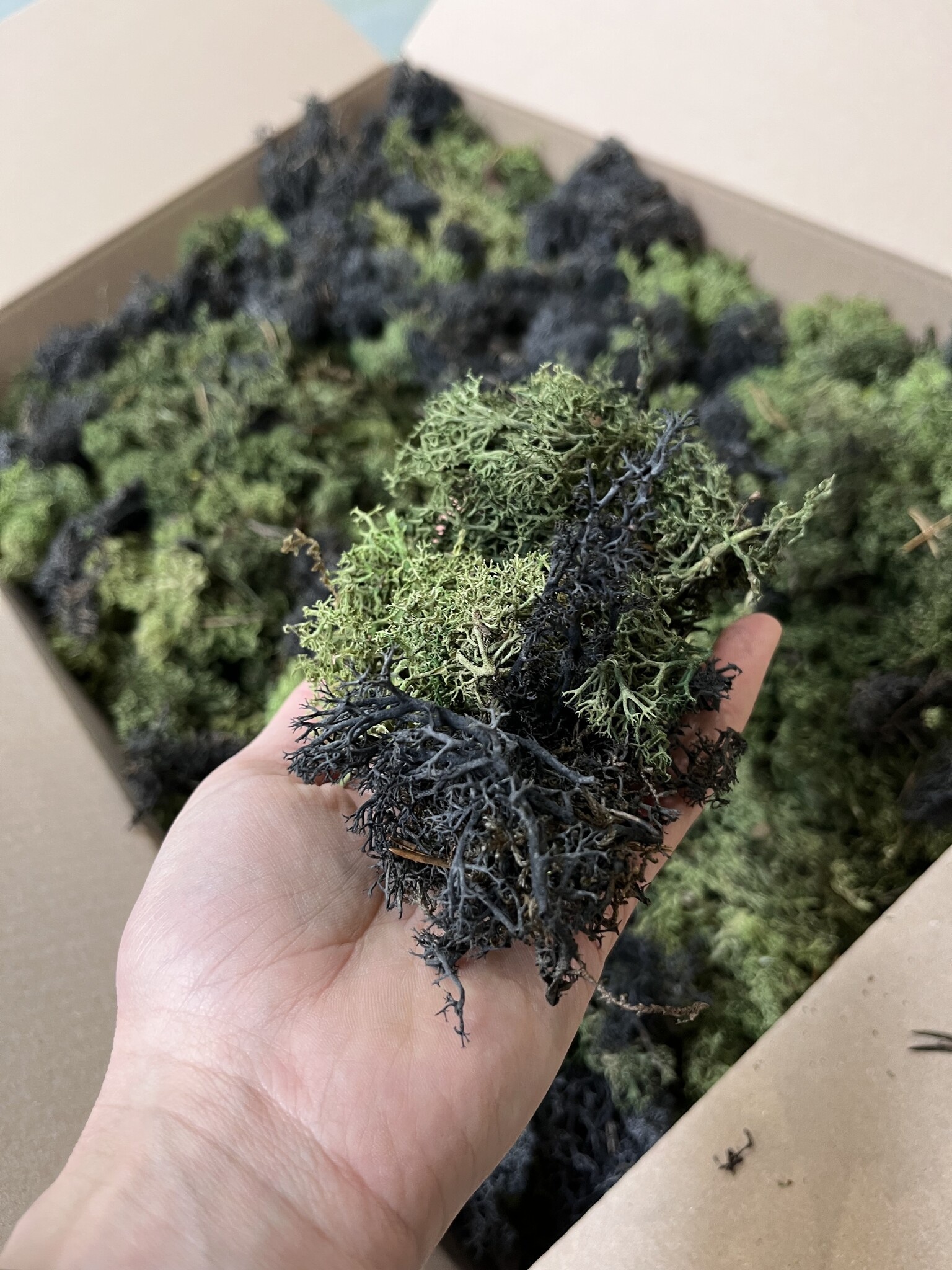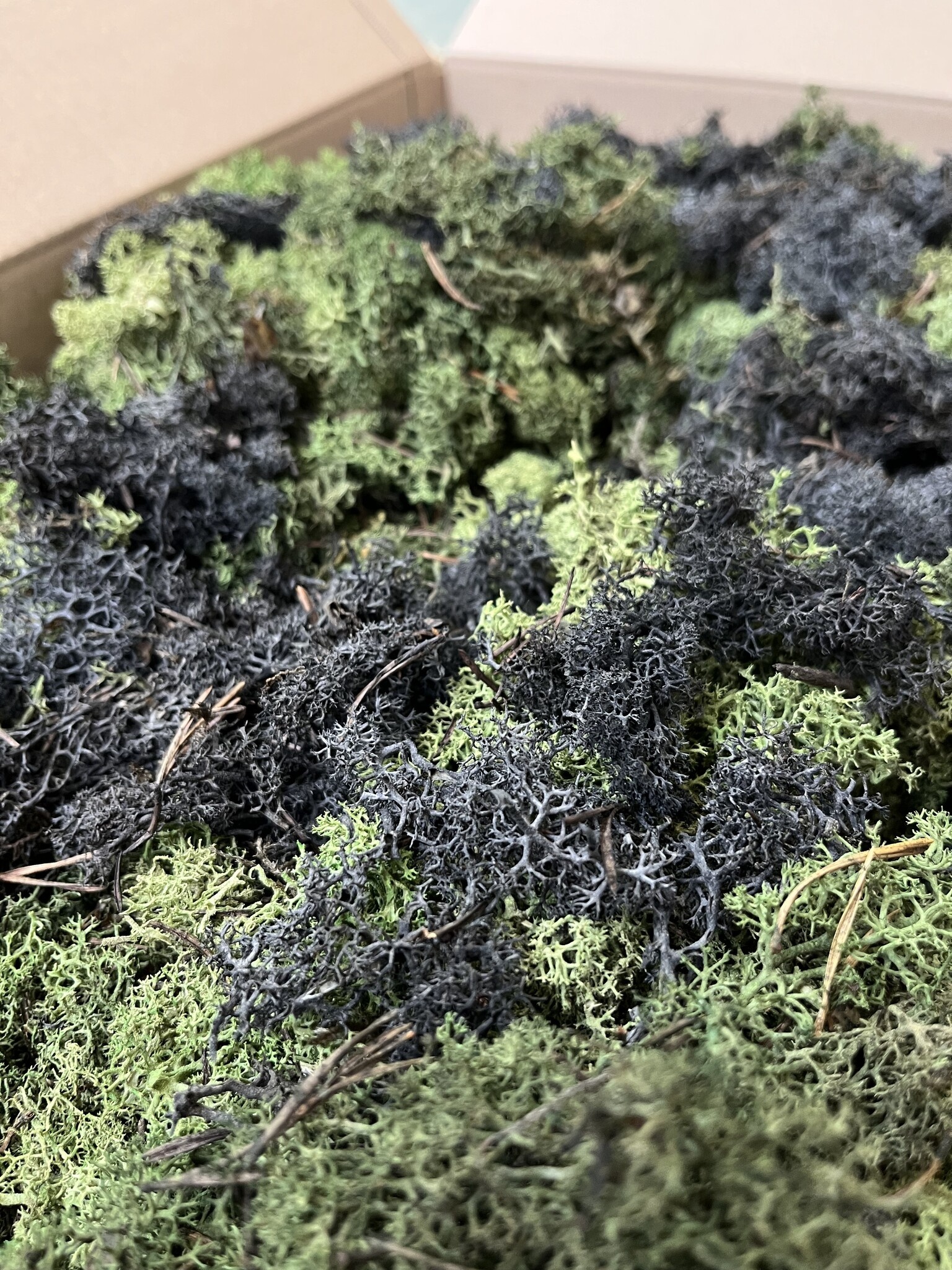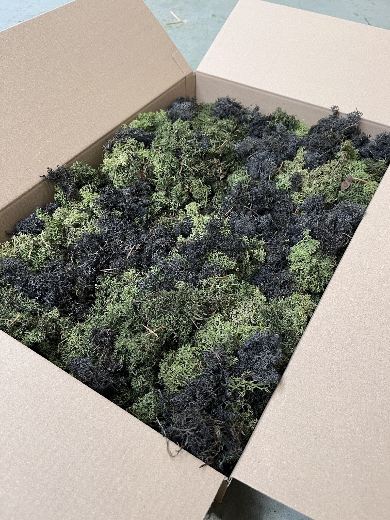 Diese L-Box von 60x40x10 cm enthält ECO-Moos. Gut für die Herstellung von 0,20-0,35 m². Das hängt davon ab, wie "fest" Sie das Moos verarbeiten wollen und wie "pingelig" Sie das gelieferte Moos auswählen und verarbeiten. Bei der Verwendung dieses vollen Mooses kehren die natürlich vorkommenden Farbnuancen zurück. Die ECO-Boxen enthalten weniger 'Moosköpfe' als die Reindeer Moss-Boxen. Wenn Sie eine schlichte Mooswand wünschen, wählen Sie die normalen Rentiermooskästen. Wenn die Wand wilder aussehen soll und Sie preisbewusst sind, eignen sich unsere ECO L-Boxen für Ihr Projekt. Sie können sich auch für einen Mix entscheiden, bei dem verschiedene Farbtöne miteinander gemischt werden, um einen spielerischen und abwechslungsreichen Effekt zu erzielen.
