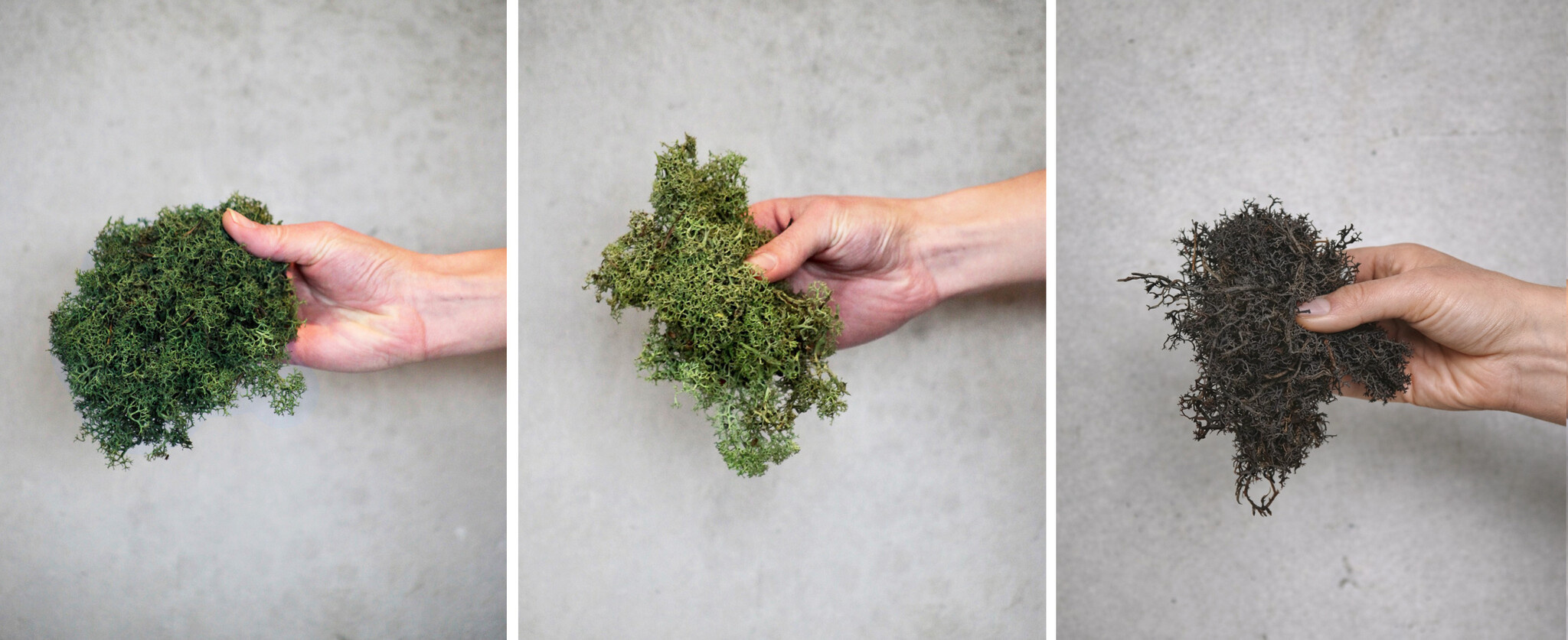 - Dauerhaft weich. Bei einer niedrigen Luftfeuchtigkeit von 20-30% kann das Moos aushärten. Sobald die Luftfeuchtigkeit wieder ansteigt, wird das Moos wieder weich.
