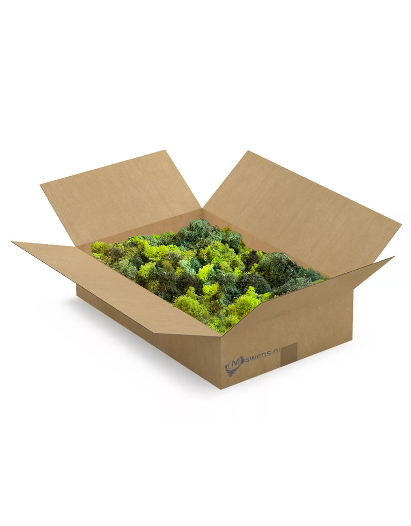 Diese L-Box von 60x40x10 cm enthält ECO-Moos. Gut für die Herstellung von 0,20-0,35 m². Das hängt davon ab, wie "fest" Sie das Moos verarbeiten wollen und wie "pingelig" Sie das gelieferte Moos auswählen und verarbeiten. Bei der Verwendung dieses vollen Mooses kehren die natürlich vorkommenden Farbnuancen zurück. Die ECO-Boxen enthalten weniger 'Moosköpfe' als die Reindeer Moss-Boxen. Wenn Sie eine schlichte Mooswand wünschen, wählen Sie die normalen Rentiermooskästen. Wenn die Wand wilder aussehen soll und Sie preisbewusst sind, eignen sich unsere ECO L-Boxen für Ihr Projekt. Sie können sich auch für einen Mix entscheiden, bei dem verschiedene Farbtöne miteinander gemischt werden, um einen spielerischen und abwechslungsreichen Effekt zu erzielen.