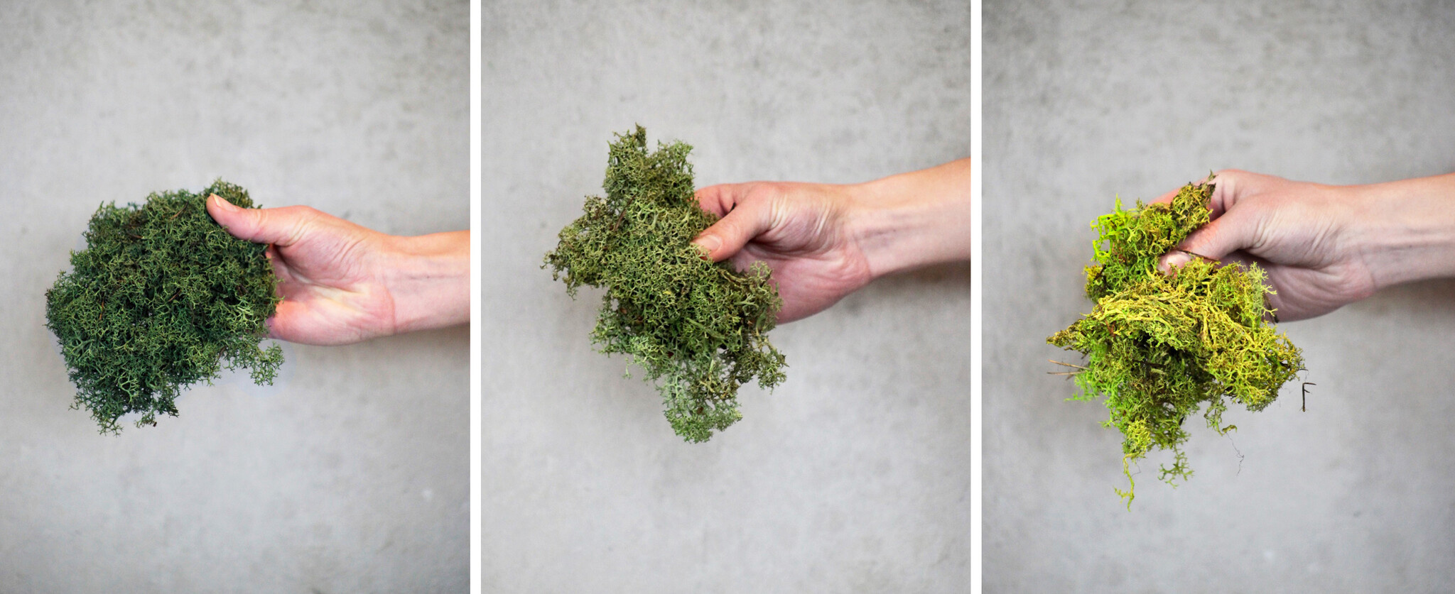 - Dauerhaft weich. Bei einer niedrigen Luftfeuchtigkeit von 20-30% kann das Moos aushärten. Sobald die Luftfeuchtigkeit wieder ansteigt, wird das Moos wieder weich.