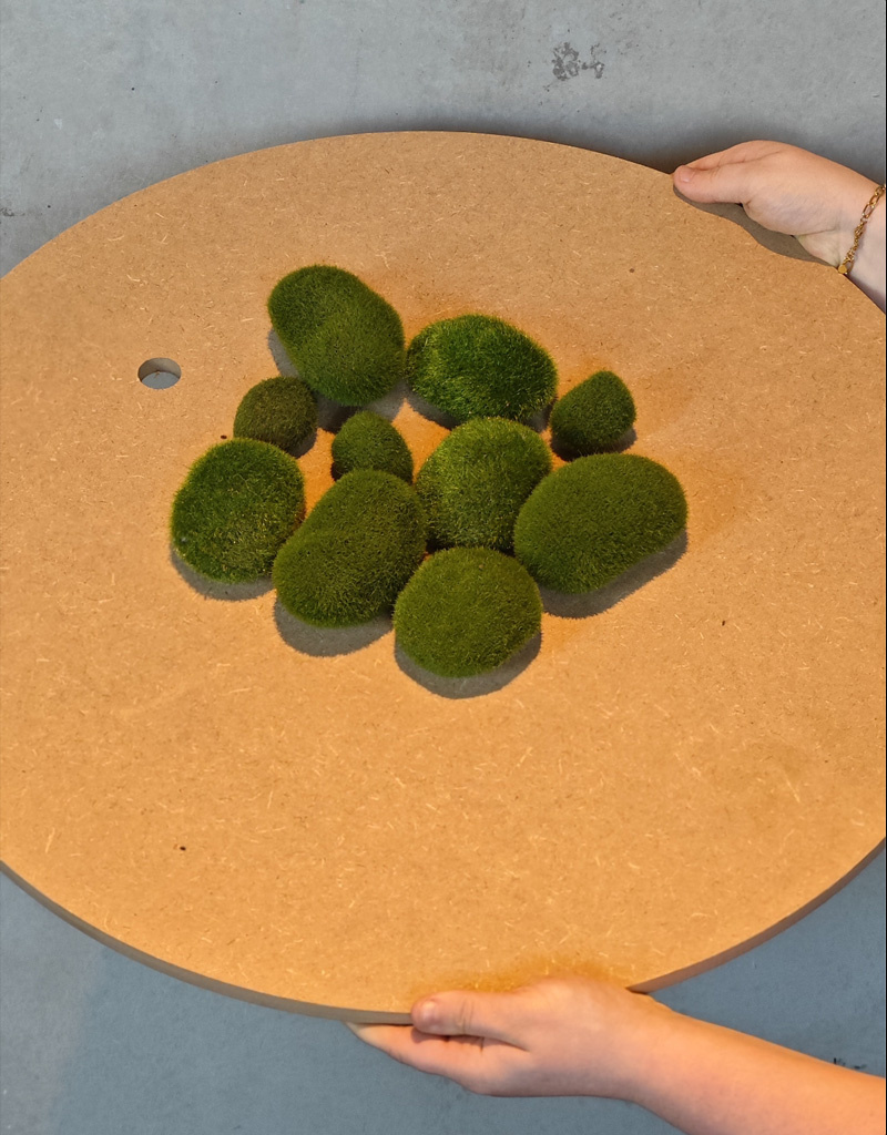 Das künstliche Kugelmoos auf dem Bild ist auf einem 60 cm großen Kreis dargestellt, damit Sie die benötigte Menge besser einschätzen können.