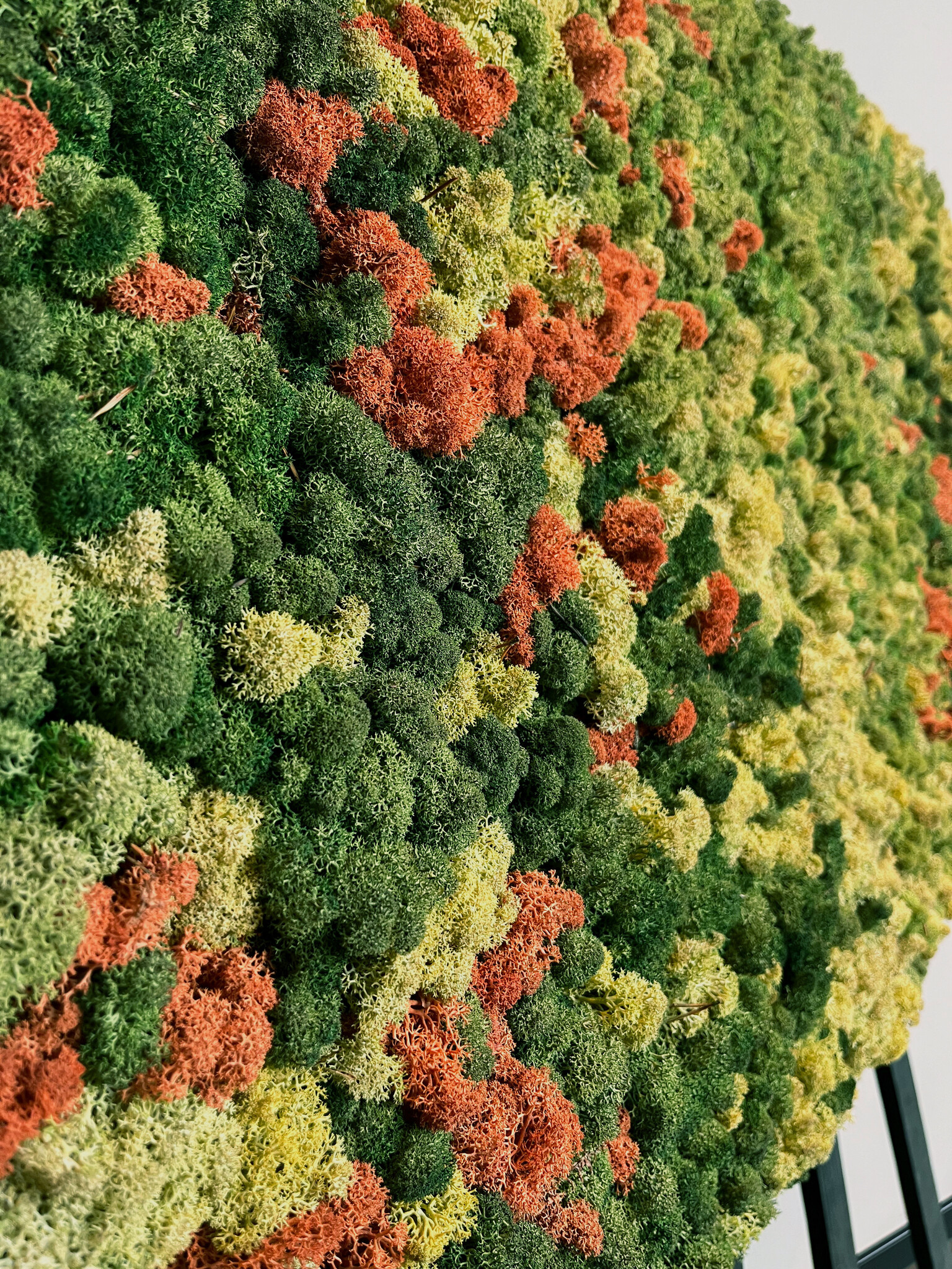 Das Ovales Moosbild Emilia besticht durch eine atemberaubende Rentiermoos-Mischung aus leuchtenden Farben, die wunderbar miteinander harmonieren. Dieses Moosbild besteht aus 4 verschiedenen Farben von Rentiermoos, wobei Persici-Rot und Altgrün das Ganze erhellen. Emilia verleiht mit seinen natürlichen Farben und dem strukturierten Moos jedem Interieur mühelos Charme. In einem minimalistischen Ambiente setzt das Moosbild einen farbenfrohen Akzent, während das Moosbild in einer klassischen oder modernen Wohnung die natürlichen und erdigen Töne unterstreicht. Perfekt für alle, die mit einem Kunstwerk eine beruhigende und stilvolle Atmosphäre schaffen wollen.