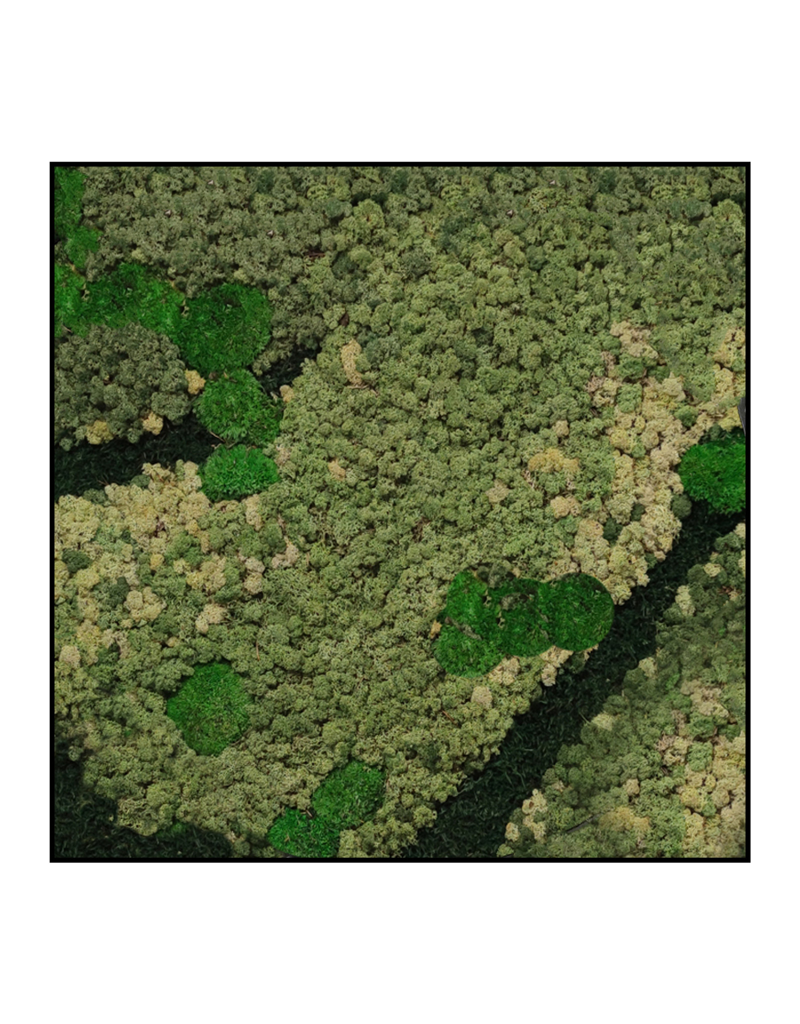 Die Moosvarietät Contraria enthält einen Moosmix mit einer altgrünen Akzentfarbe. Der Kontrast zwischen den sanften Farben des Rentiermooses und der dunkelgrünen Farbe des Flachmooses schafft einen starken Kontrast. Contraria enthält ein kühnes Design, bei dem Sie jedes Mal etwas anderes sehen werden. Eine Bereicherung für jeden Raum!