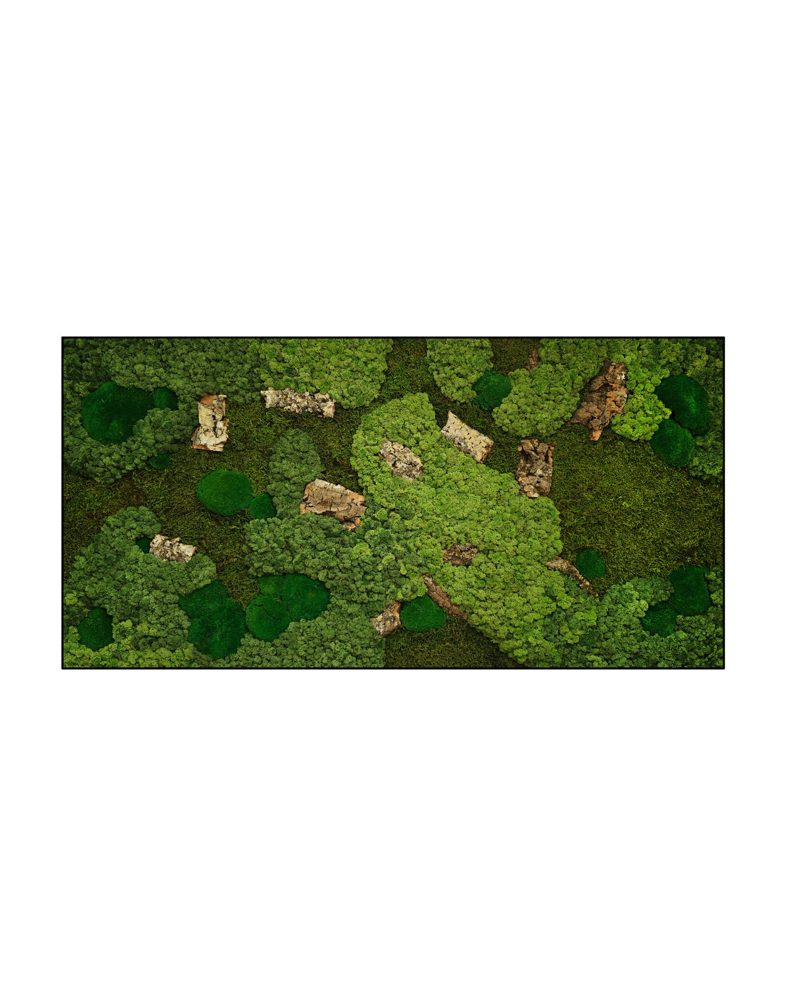 Die Abbildung zeigt das Muster eines Rechteckiges Moosbild in der Größe 120x60 cm. Da es sich um ein Naturprodukt handelt, ist jedes Moosbild ein Unikat. Daher kann das Layout des gekauften Moosbildes von dem ausgewählten Foto abweichen. Sie benötigen eine andere Größe? Bitte kontaktieren Sie uns unter [email protected]