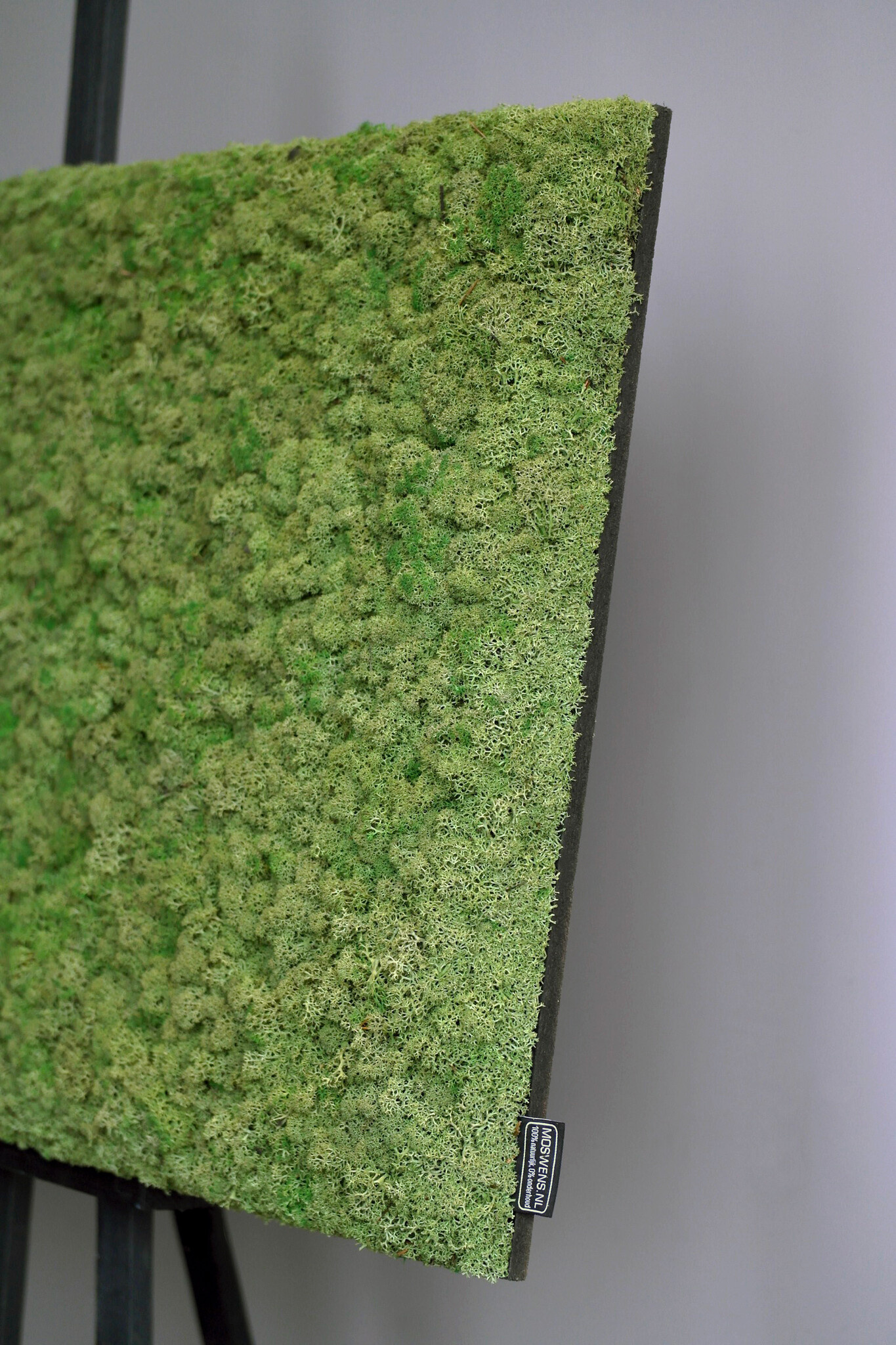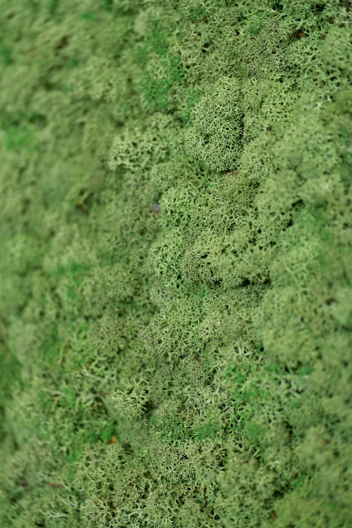 Dimidium besteht zu 100 % aus Rentiermoos in der Farbe Grün. Das Rentiermoos hat eine Dicke von +/- 5 cm. Das Moos ist buschig, weich und hat hohle Äste. Das Moos enthält Nadeln, wodurch es ein natürliches Aussehen erhält. Möchten Sie eine ruhige und luxuriöse Atmosphäre in Ihrem Interieur schaffen? Dann ist dieses einfarbige Moosbild aus Rentiermoos genau das Richtige für Sie.