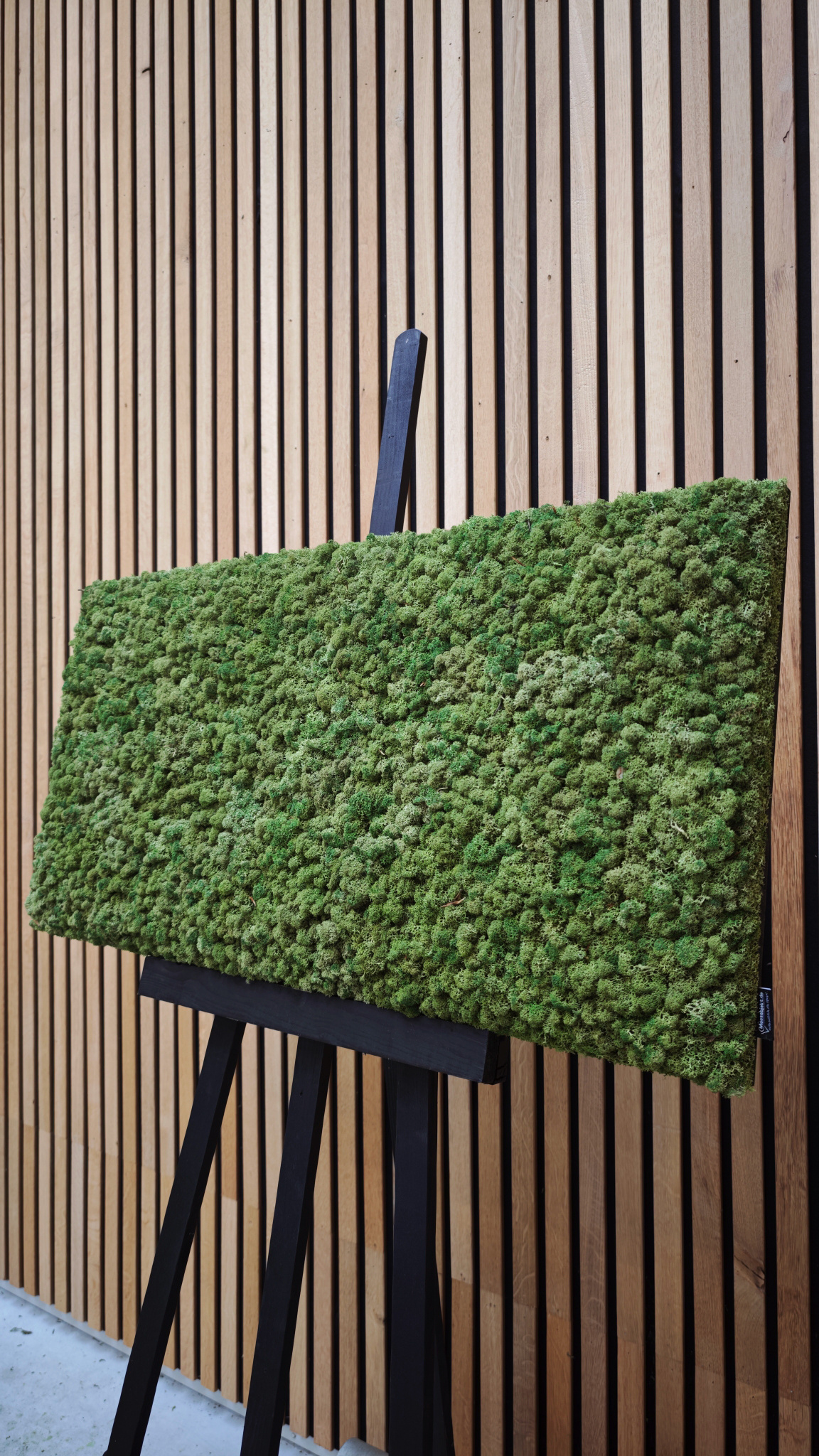 Ein Moosbild von 100x100 cm hat ein Gewicht von +/- 10-15 KG. Für eine optimale Schallabsorption können wir optional eine Akustikplatte (AkMOStico) in das Moosrechteck einbauen. Dies sorgt für 15% mehr Schallabsorption!