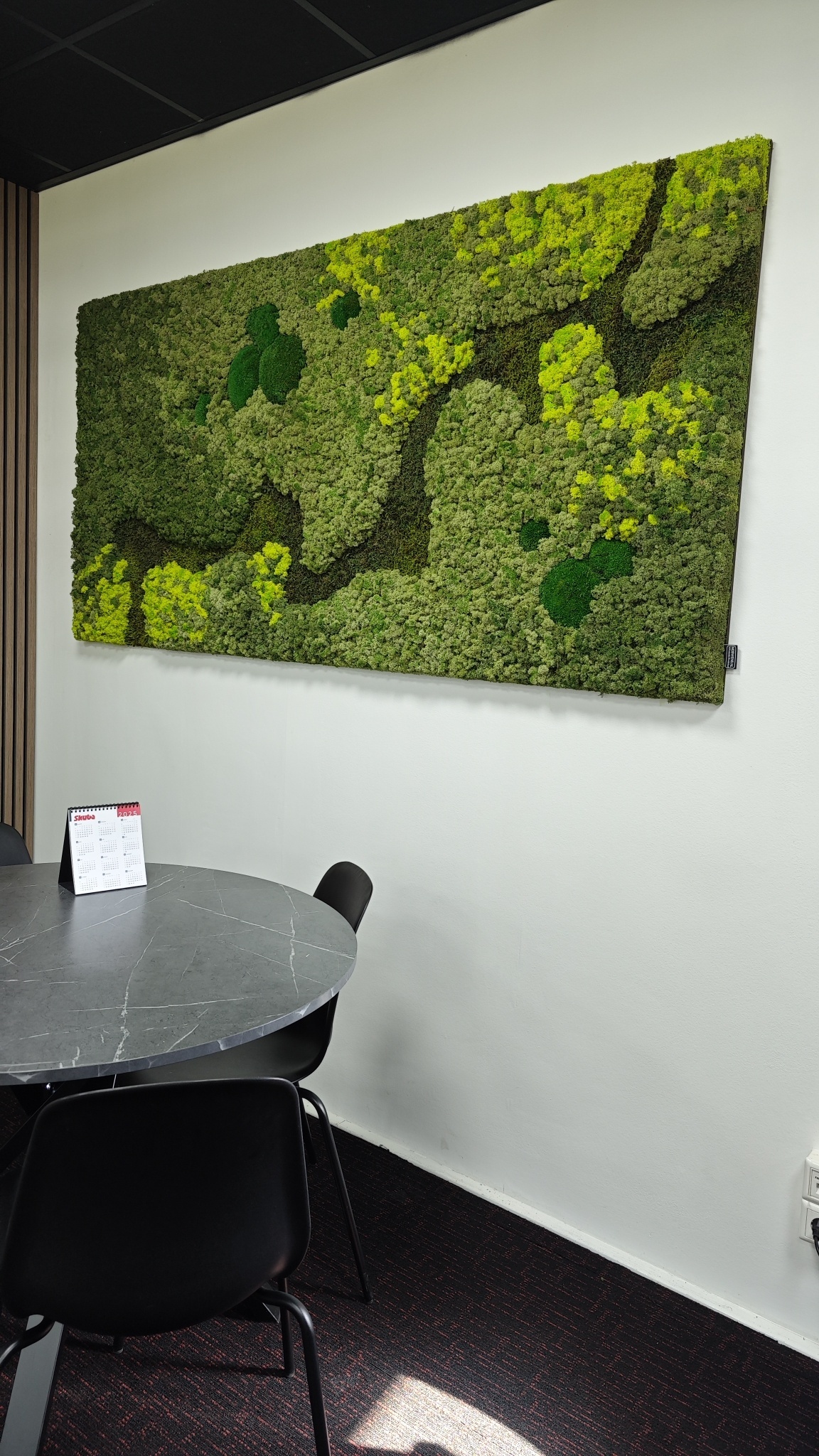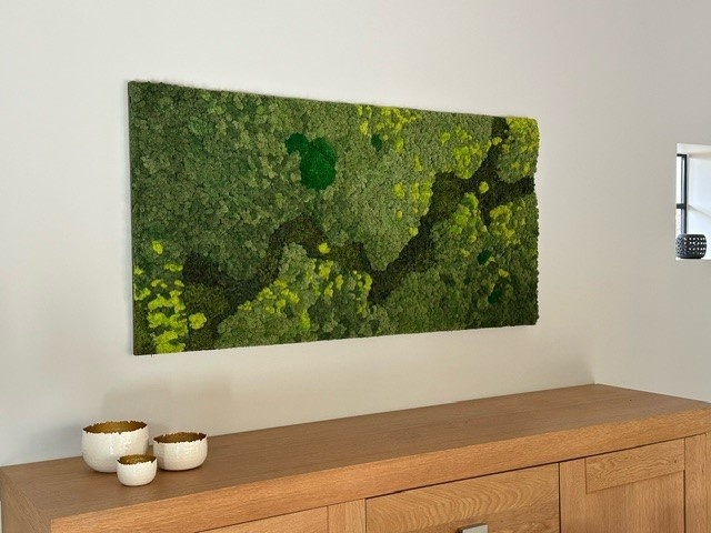 Unsere Moosbilder schaffen eine einzigartige grüne Atmosphäre, die ideal für den Einsatz in (Wohn-)Küchen/Empfangsbereichen/Büroräumen oder über dem Sofa zu Hause ist.