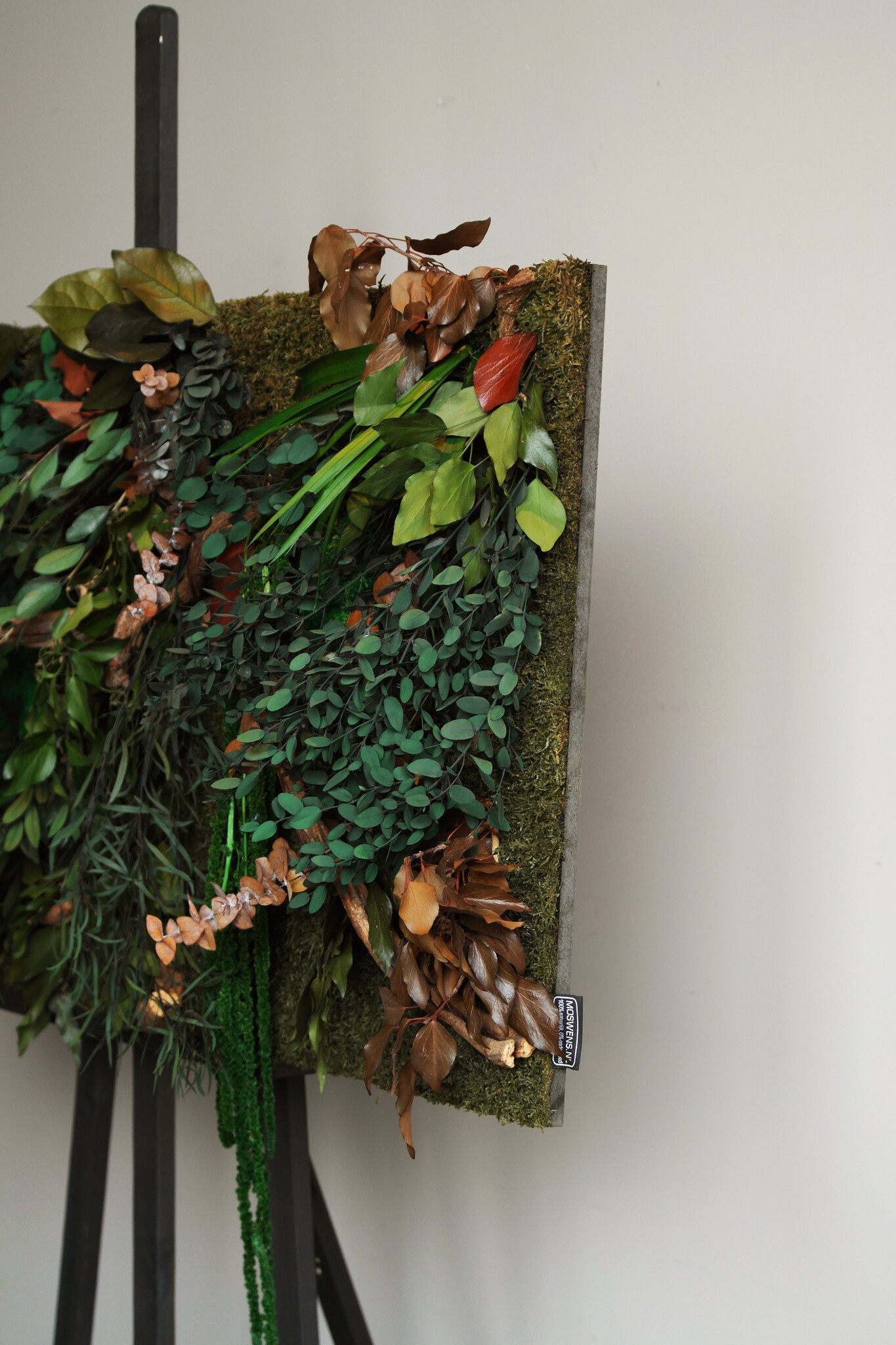 Unsere Moosbilder schaffen eine einzigartige grüne Atmosphäre, die sich perfekt für den Einsatz in (Wohn-)Küchen/Empfangsbereichen/Büros oder über dem Sofa zu Hause eignet.