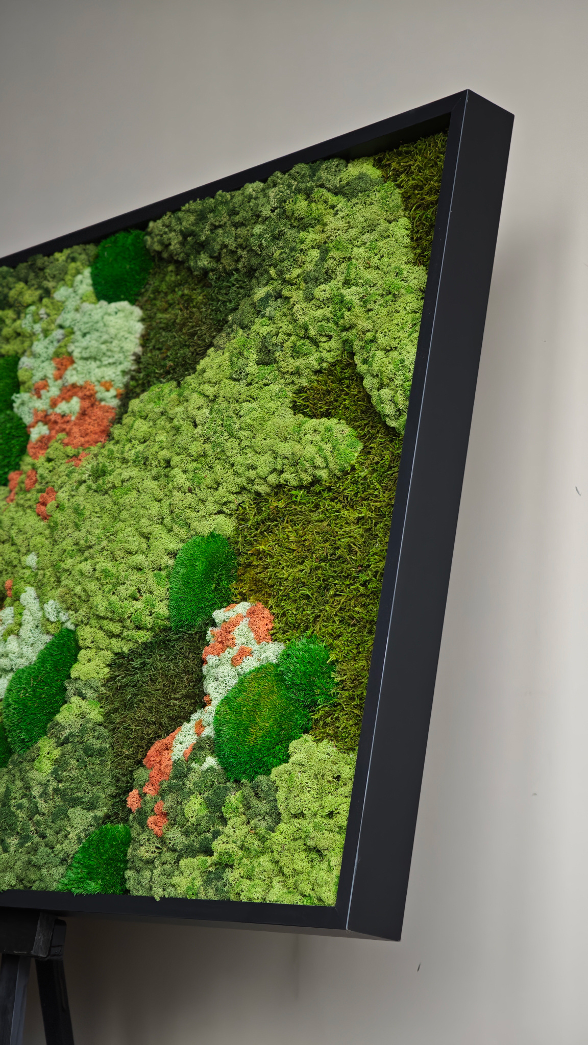 Unsere Moosbilder schaffen eine einzigartige grüne Atmosphäre, die sich perfekt für (Wohn-)Küchen/Empfangsbereiche/Büros oder über dem Sofa in Ihrem Zuhause eignet.