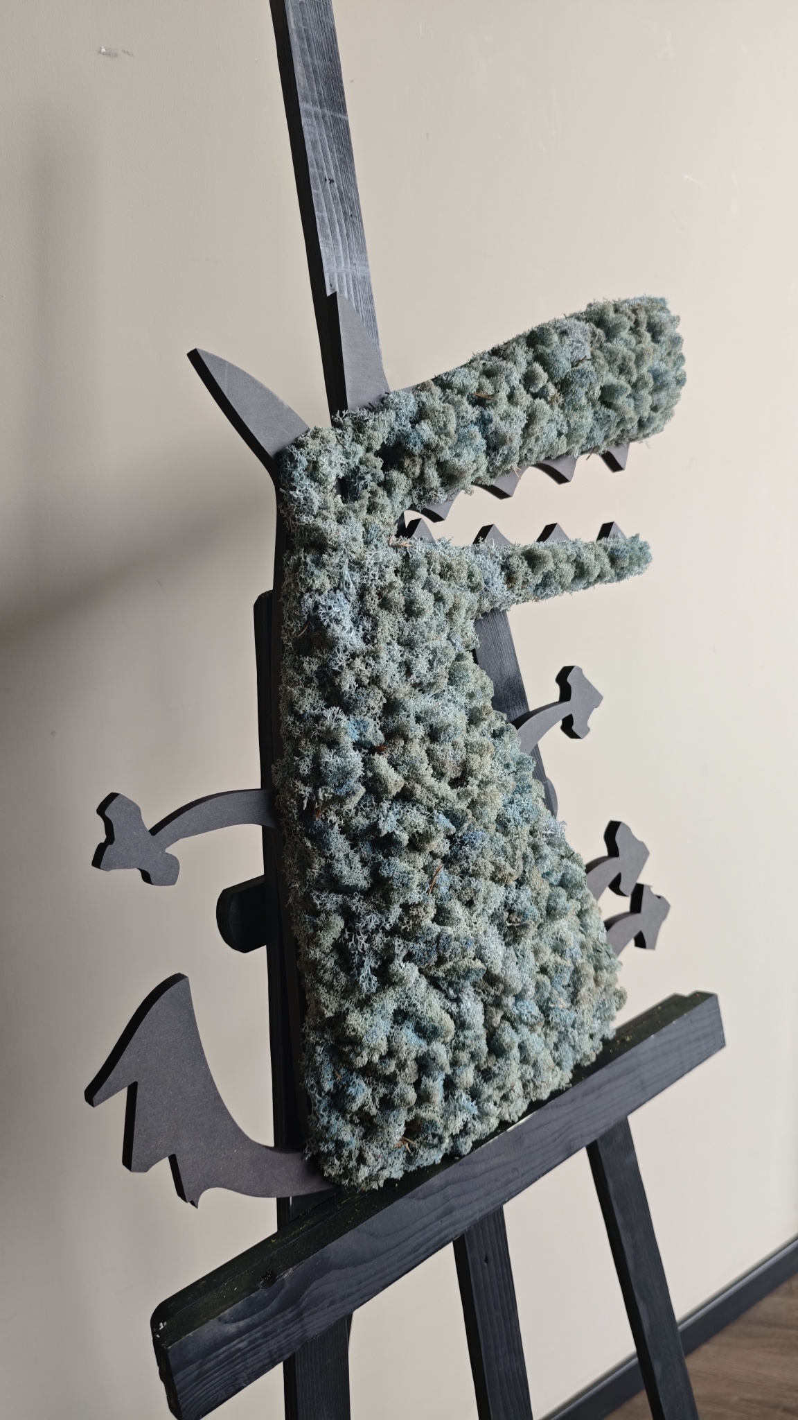 Mit seinen scharfen Zähnen ist Drako ein echter Drache. In den verschiedenen Moosfarben ist er ein toller Blickfang im Kinderzimmer oder z.B. in einer Spielecke im Wohnzimmer. Auf der Rückseite von Drako haben wir zwei Aufhängeösen mit Zahnhaken angebracht. So können Sie ihn ganz einfach an die Wand hängen. Das Moos Tier kann in verschiedenen Farben bestellt werden. Wir haben das Moos mit äußerster Sorgfalt angebracht und mit natürlichen Salzen behandelt. Dadurch ist das Moos völlig wartungsfrei, es behält seine Farbe und es nisten sich keine Insekten darin ein. Es handelt sich um ein 100%iges Naturprodukt, das für Kinder ungefährlich ist. Die Moos Tiere haben eine maximale Größe von 0,60 breit x 0,60 hoch. Die Dicke des Mooses beträgt +/- 5 bis 6 cm.
