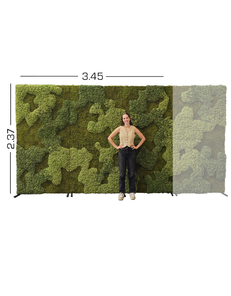 Das Moos ist 100 % natürlich, aber nicht mehr lebendig. Es wurde mit Salzen behandelt, wodurch es vollständig schwer entflammbar ist, keine Insekten anzieht und sein frisches Aussehen behält. Zudem verbessert die Wand die Akustik im Raum.