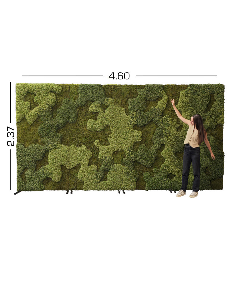 • Das Moos ist 100 % natürlich, aber nicht mehr lebendig. Es wurde mit Salzen behandelt, wodurch es vollständig schwer entflammbar ist, keine Insekten anzieht und sein frisches Aussehen behält. Zudem verbessert die Wand die Akustik im Raum.