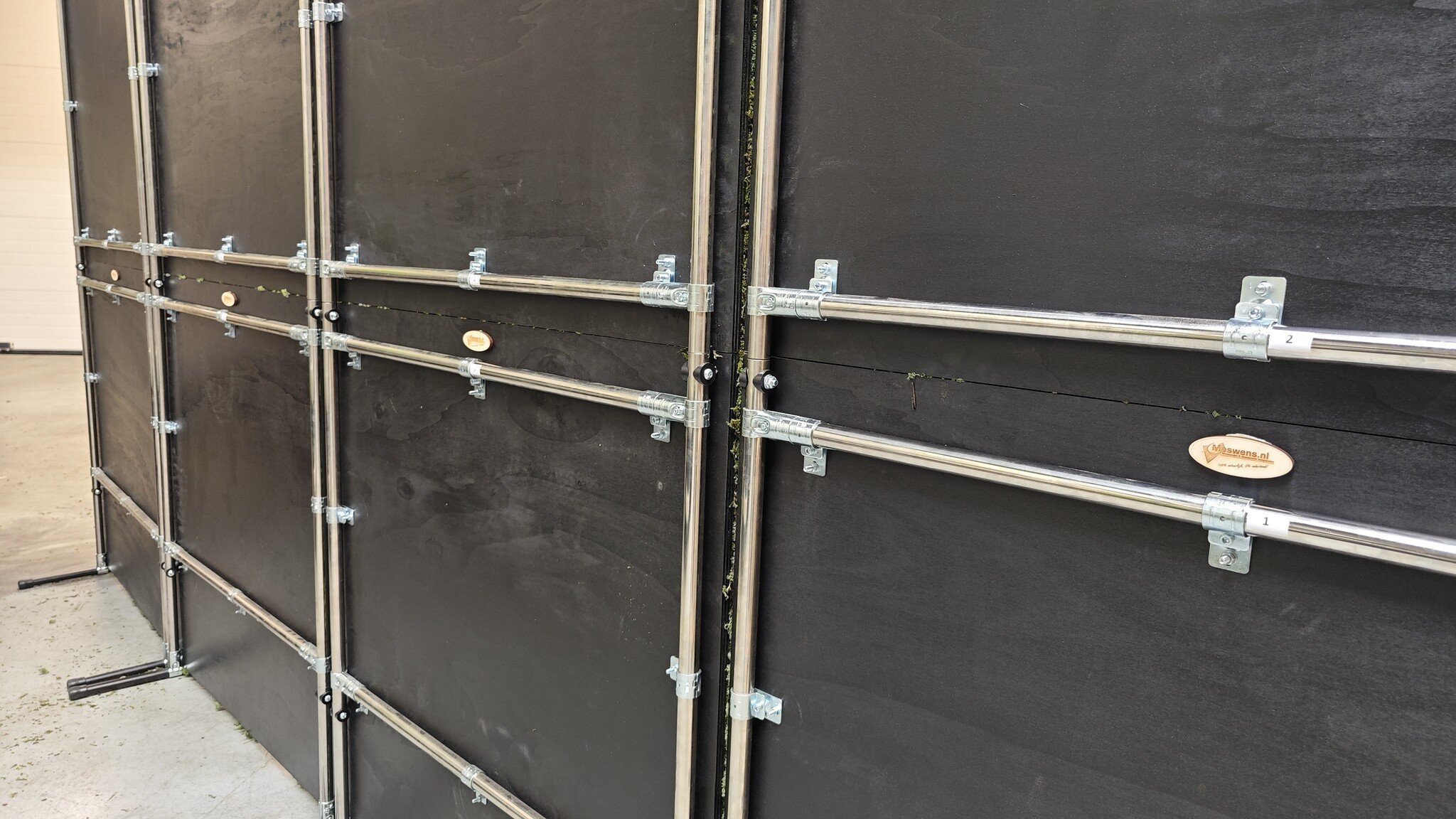 Option 3: 3.45 m breit x 2.37 m hoch → bestehend aus 6 Füßen und 6 Paneelen à 1.15 x 1.15 m