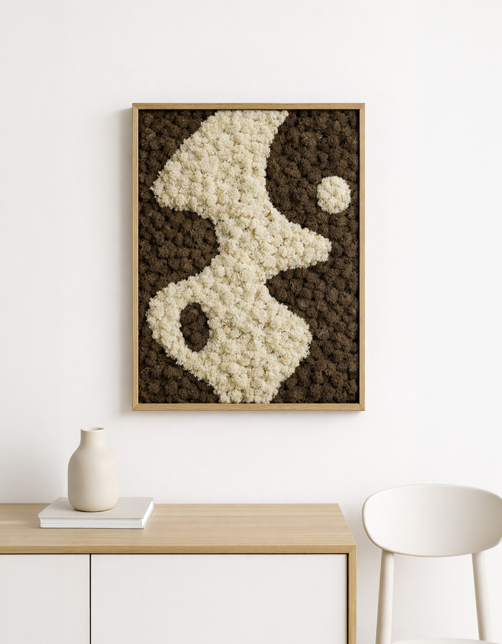 Erleben Sie die Kraft des Japandi-Designs, gefertigt aus echtem Moos in einer beruhigenden Komposition. Jedes Moosbild wird von Hand hergestellt, ist vollkommen pflegefrei und sofort bereit, stilvoll aufgehängt zu werden. Die klaren Linien gehen sanft in eine andere Moosfarbe über und erzeugen so einen beeindruckenden 3D-Effekt, der Ihrem Interieur Tiefe und Charakter verleiht.