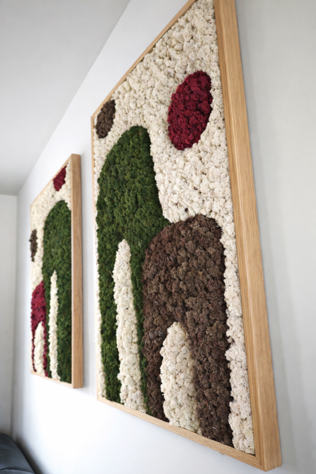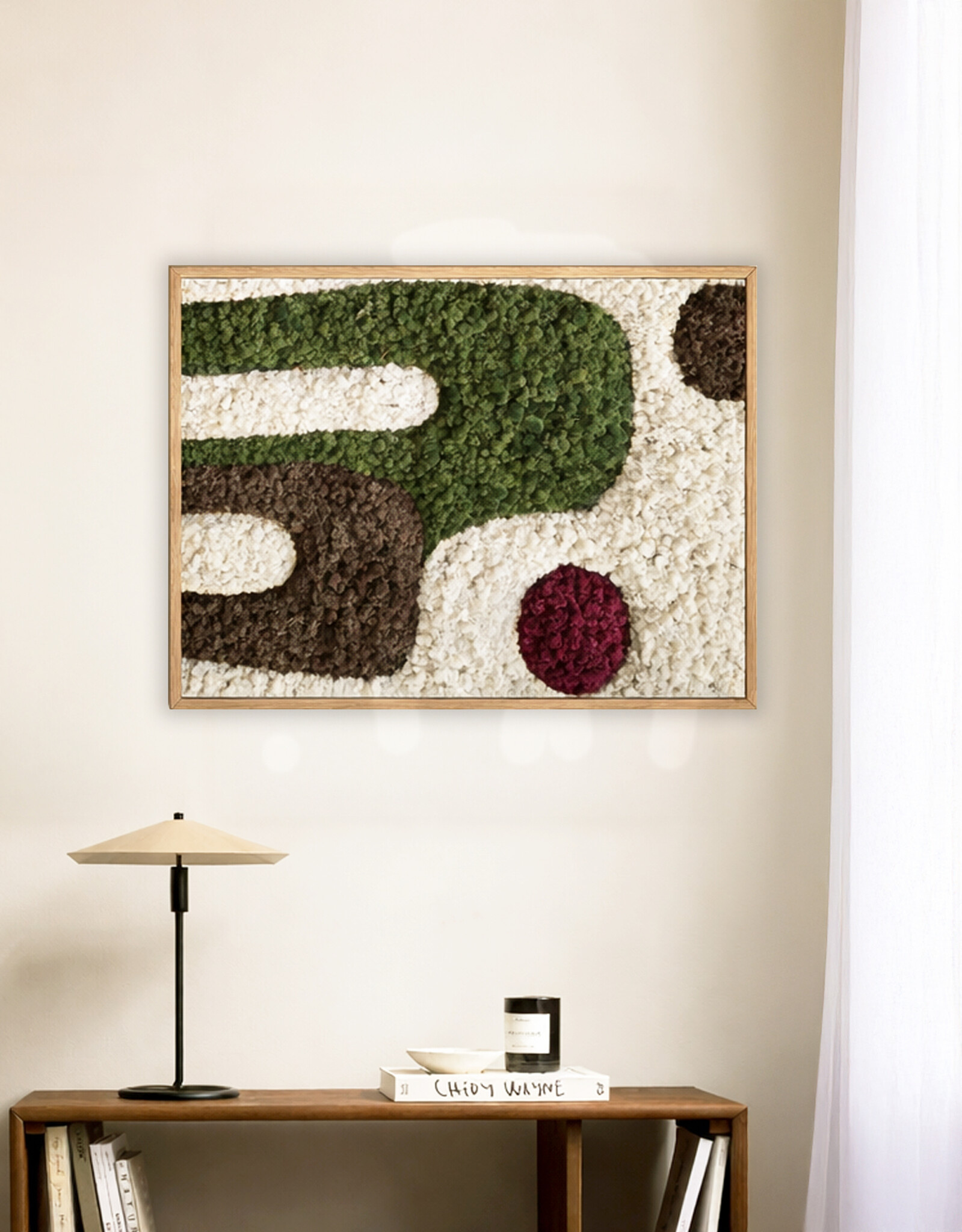 Erleben Sie die Kraft des Japandi-Designs, gefertigt aus echtem Moos in einer beruhigenden Komposition. Jedes Moosbild wird von Hand hergestellt, ist vollkommen pflegefrei und sofort bereit, stilvoll aufgehängt zu werden. Die klaren Linien gehen sanft in eine andere Moosfarbe über und erzeugen so einen beeindruckenden 3D-Effekt, der Ihrem Interieur Tiefe und Charakter verleiht.