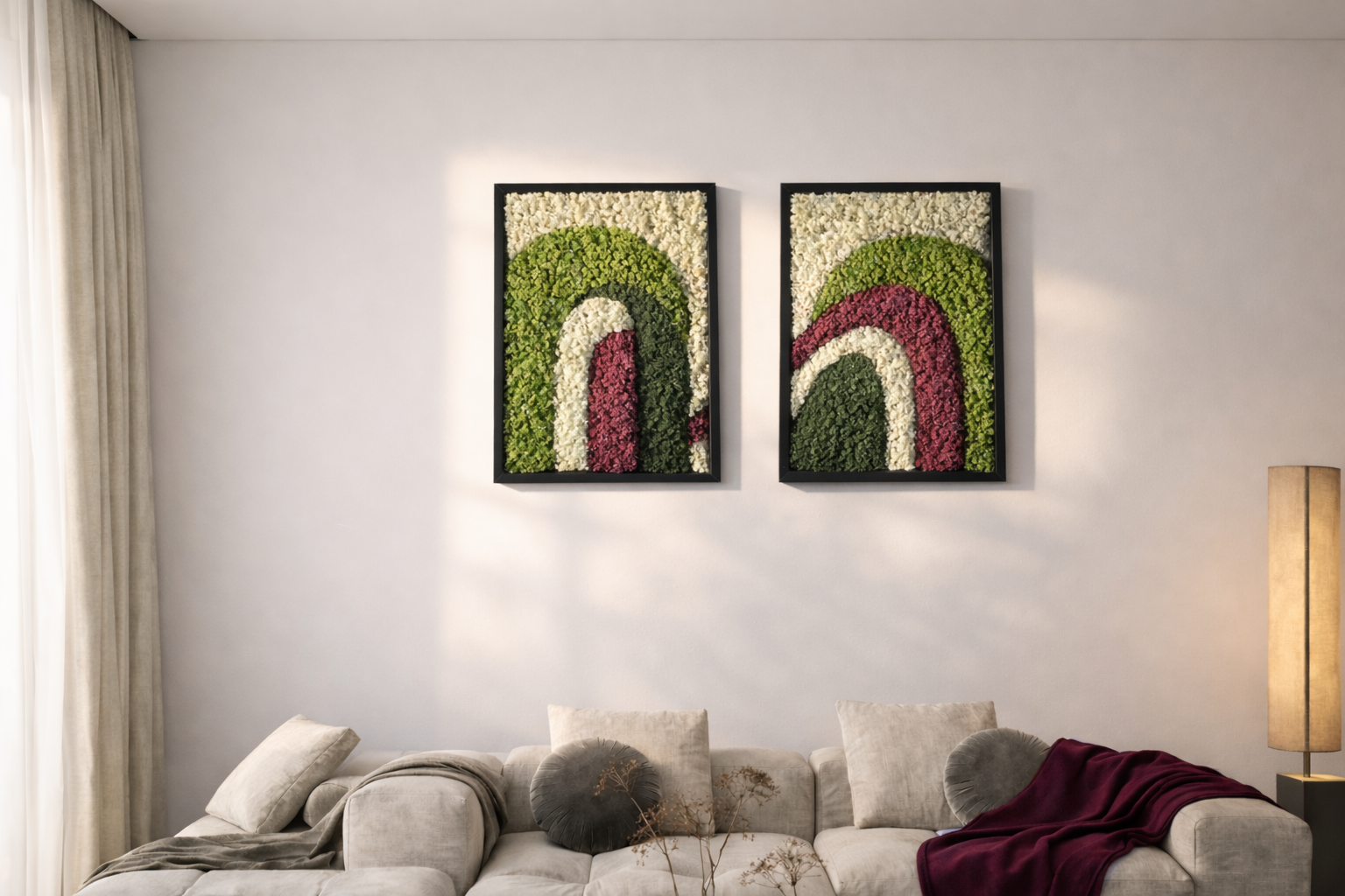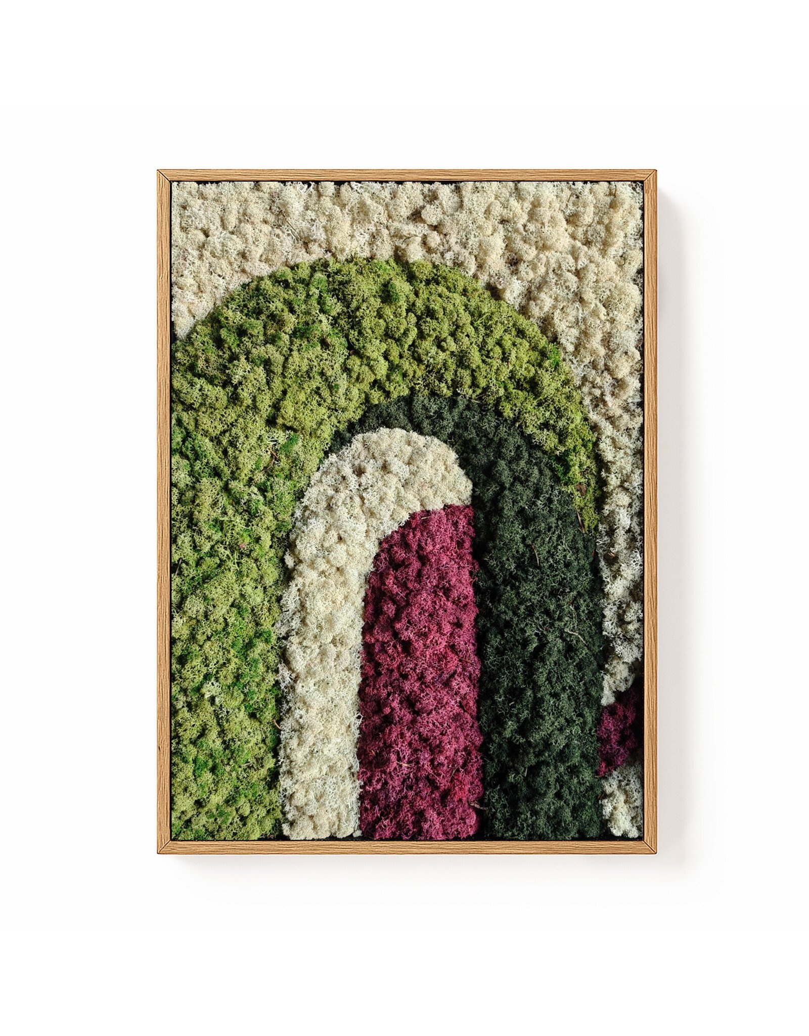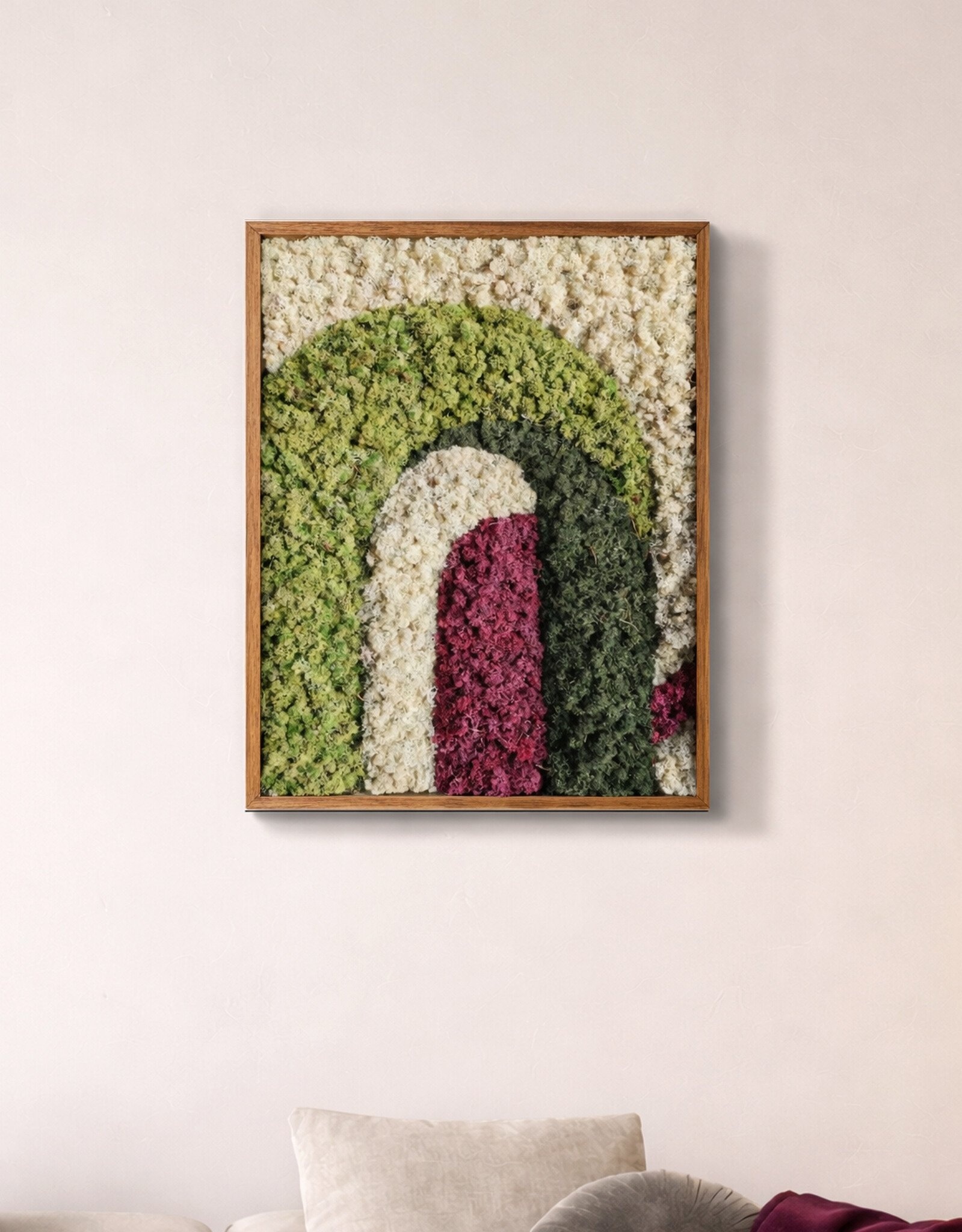 Erleben Sie die Kraft des Japandi-Designs, gefertigt aus echtem Moos in einer beruhigenden Komposition. Jedes Moosbild wird von Hand hergestellt, ist vollkommen pflegefrei und sofort bereit, stilvoll aufgehängt zu werden. Die klaren Linien gehen sanft in eine andere Moosfarbe über und erzeugen so einen beeindruckenden 3D-Effekt, der Ihrem Interieur Tiefe und Charakter verleiht.