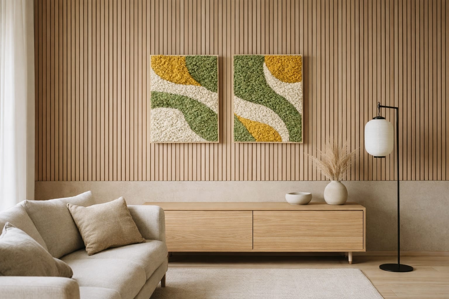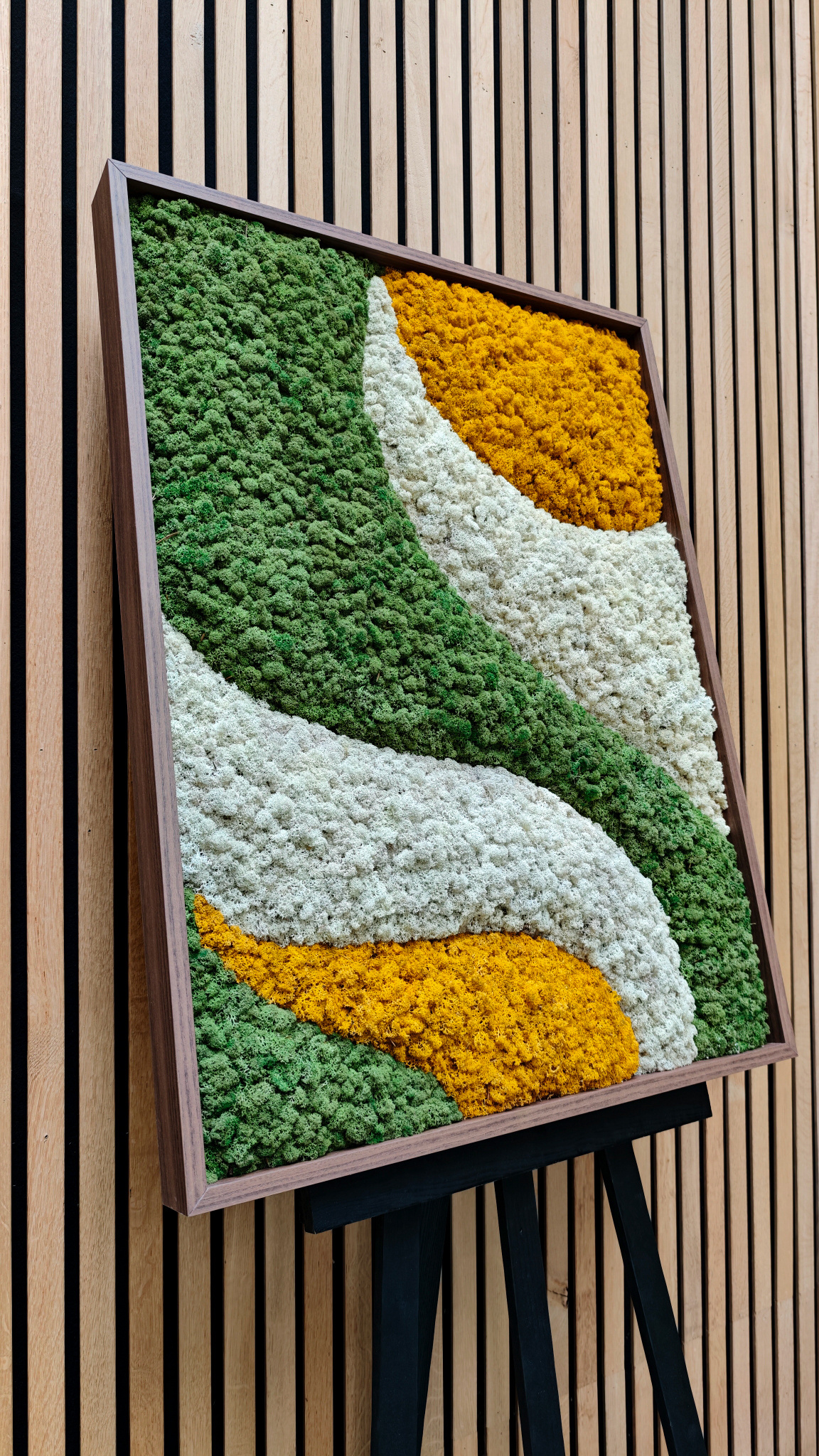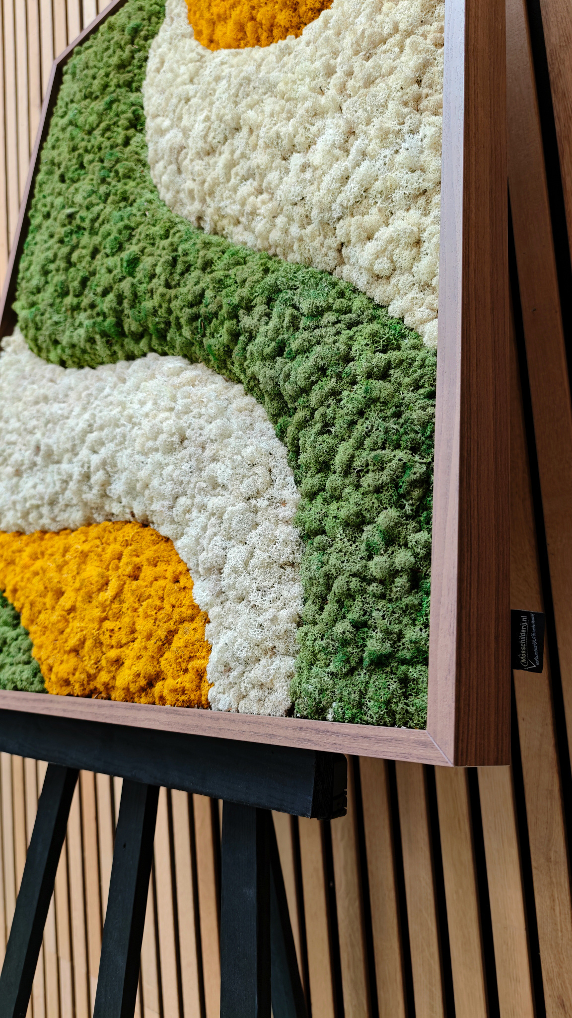 Erleben Sie die Kraft des Japandi-Designs, gefertigt aus echtem Moos in einer beruhigenden Komposition. Jedes Moosbild wird von Hand hergestellt, ist vollkommen pflegefrei und sofort bereit, stilvoll aufgehängt zu werden. Die klaren Linien gehen sanft in eine andere Moosfarbe über und erzeugen so einen beeindruckenden 3D-Effekt, der Ihrem Interieur Tiefe und Charakter verleiht.
