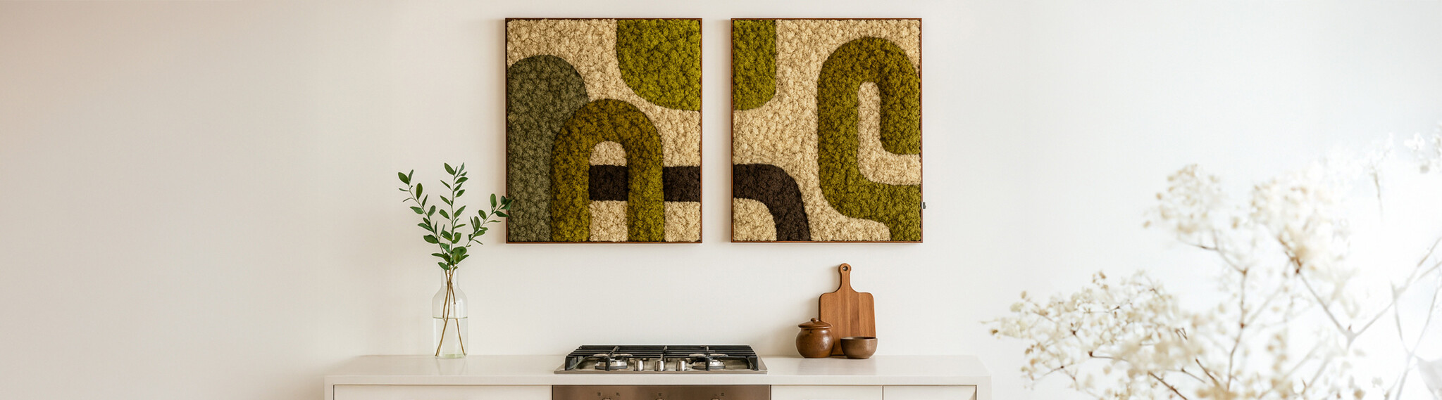 Bringen Sie Ruhe und natürliche Harmonie in Ihr Interieur mit unserer neuen Kollektion von Moosbildern im Wabi Sabi und Japandi Stil. Entworfen für alle, die Einfachheit, Natur und ein zeitloses Moosbild schätzen.