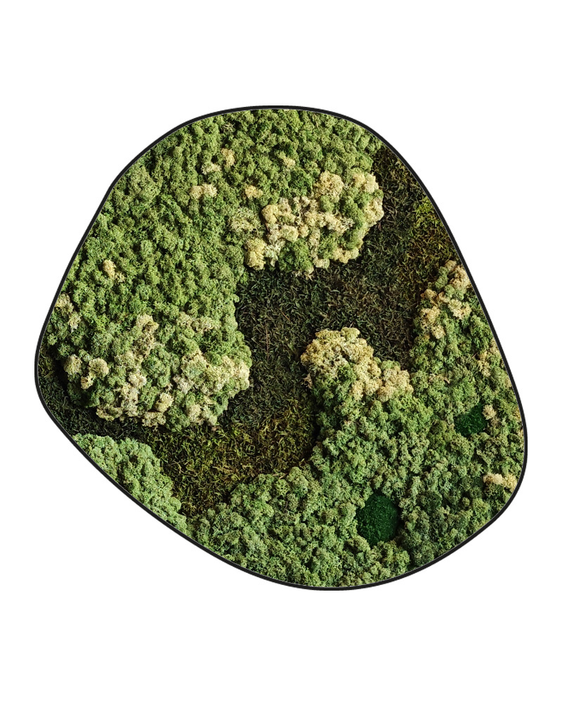 Mosvariante Vitalis erweckt Moos zum Leben in Form eines Pfades, der durch die Mitte des Kreises verläuft. Die weichen Moosstrukturen und natürlichen Farben sorgen für eine warme Ausstrahlung. Durch den Einsatz eines hellen Farbtons entsteht Ruhe und Ausgewogenheit. Das Design strahlt Schlichtheit und Tiefe aus. Ideal für alle, die natürliche Akzente mit Bedeutung schätzen.