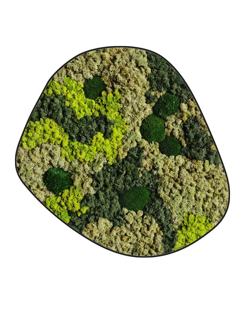 Dieses Moosbild aus Rentiermoos und Kugelmoos ist sofort an den ruhigen organischen Linien erkennbar, die sich durch das gesamte Werk ziehen. Die sanften Wellen des Rentiermooses bilden ein natürliches Design und die verschiedenen Grüntöne machen das Bild für viele Einrichtungsstile geeignet.