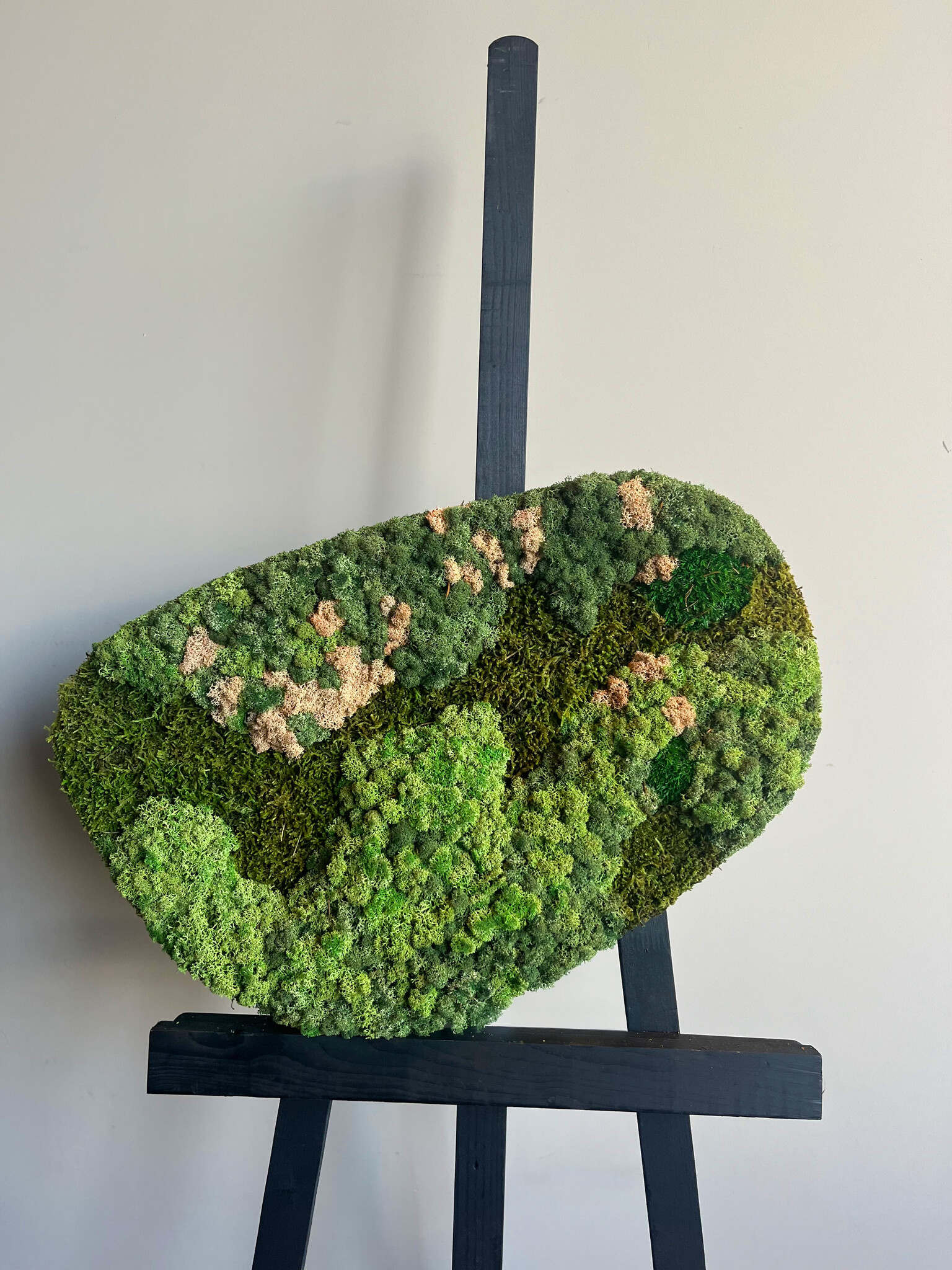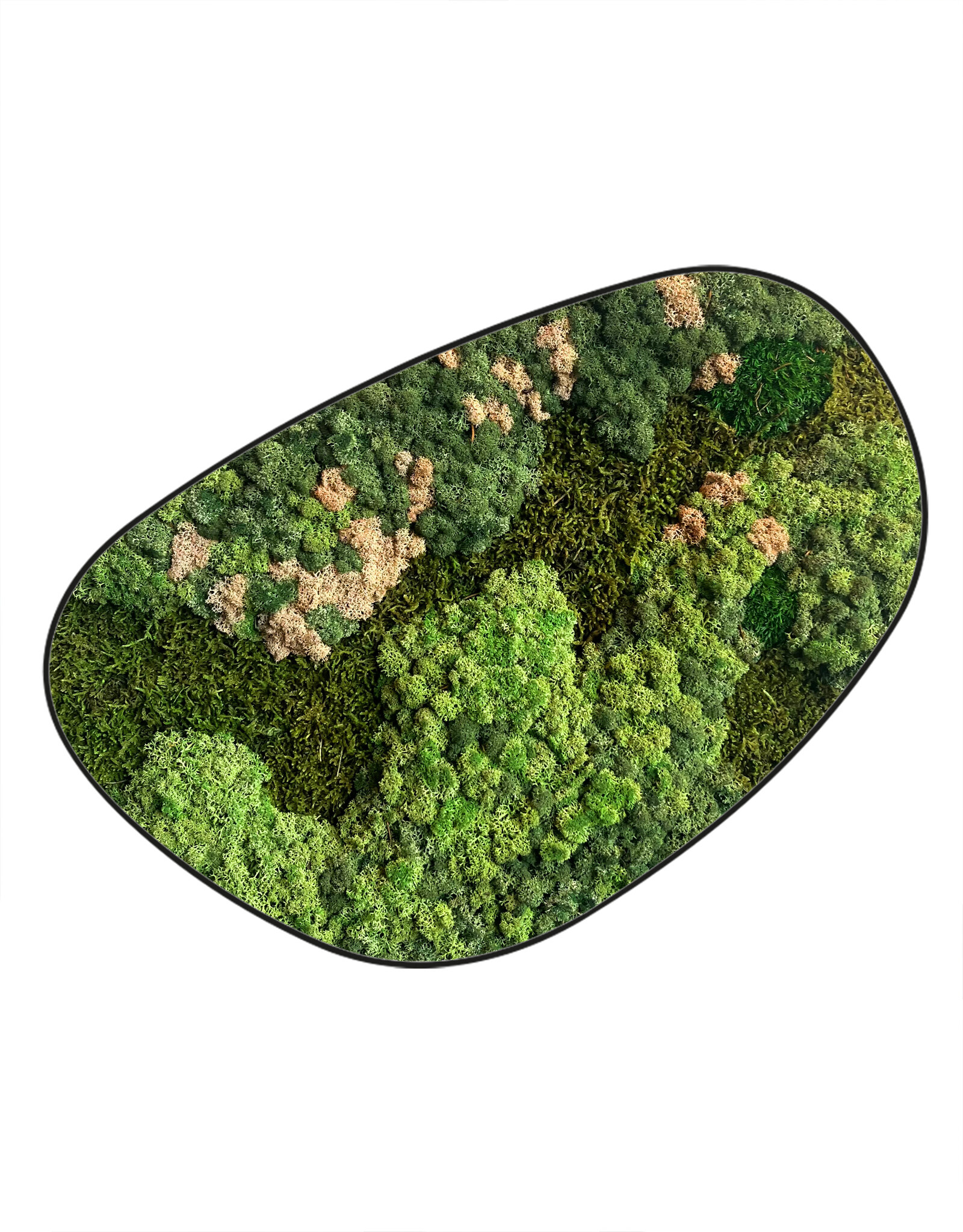 Moosvariante Rosaine ist ein harmonischer Mooskreis aus Rentier-, Flach- und Kugelmoos in tiefen Grüntönen. Sanfte Rosatöne durchbrechen das Grün und verleihen dem Kunstwerk eine frische, verspielte Note, die jedem Interieur einen stilvollen, natürlichen Akzent gibt.