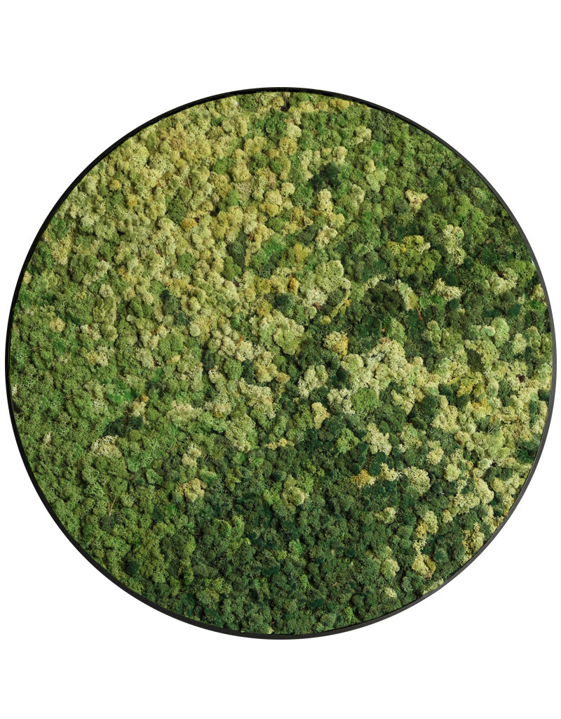 Mit einem runden Moosbild wird ein schlichtes Interieur aufgelockert. Wussten Sie, dass unsere runden Mooszirkel mit Stahlrand auch in einem industriellen Interieur gut aussehen? Das weiche, natürliche Aussehen des Mooses ist eine wunderbare Ergänzung zu den häufig verwendeten "harten" Materialien wie Beton, Stahl und Glas.