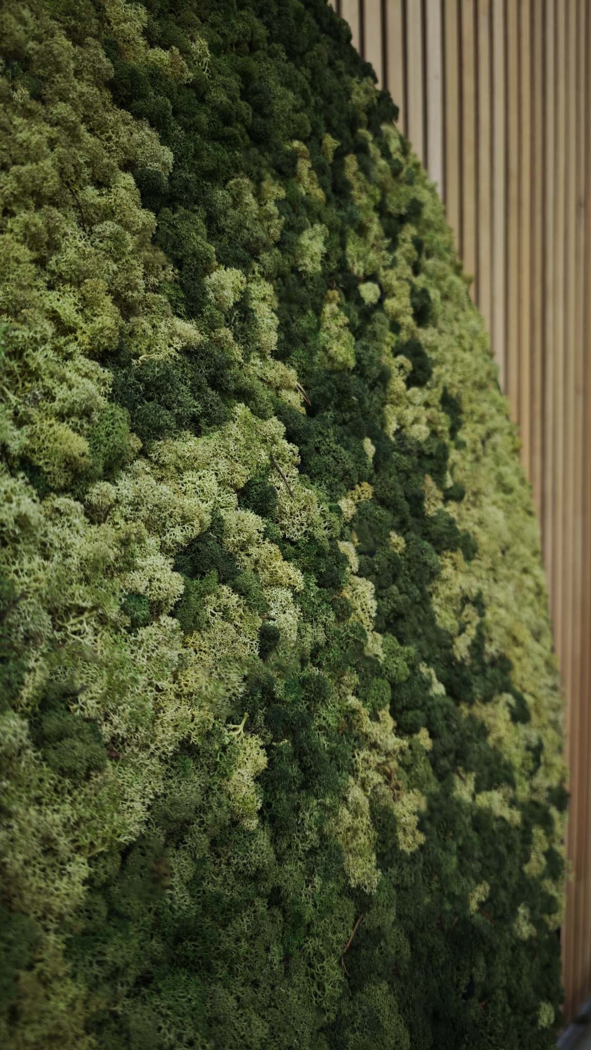 Das verwendete Moos ist ein 100%iges Naturprodukt und erfordert 0% Pflege. Zu seinen Eigenschaften und Vorteilen gehören: hohe akustische Dämpfung, feuerhemmend (imprägniert), sehr farbecht, kein Tageslicht erforderlich, schmutzabweisend (antistatisch) und da das Moos nicht mehr lebt, benötigt es keine Pflege wie Gießen, Beschneiden oder Düngen. Die Mooskreationen sind wunderschön, fühlen sich weich an und haben eine große Anziehungskraft. Unsere Moose sind von höchster Qualität und garantieren eine sehr lange Lebensdauer (10-20 Jahre).