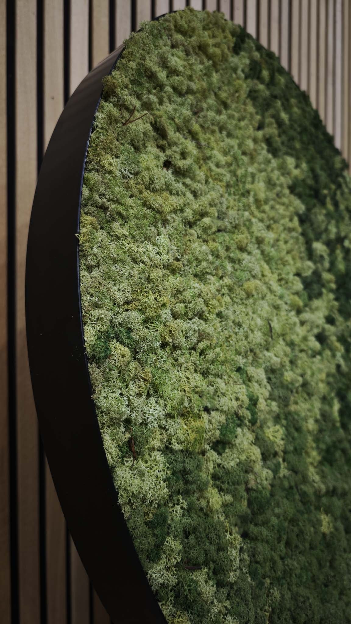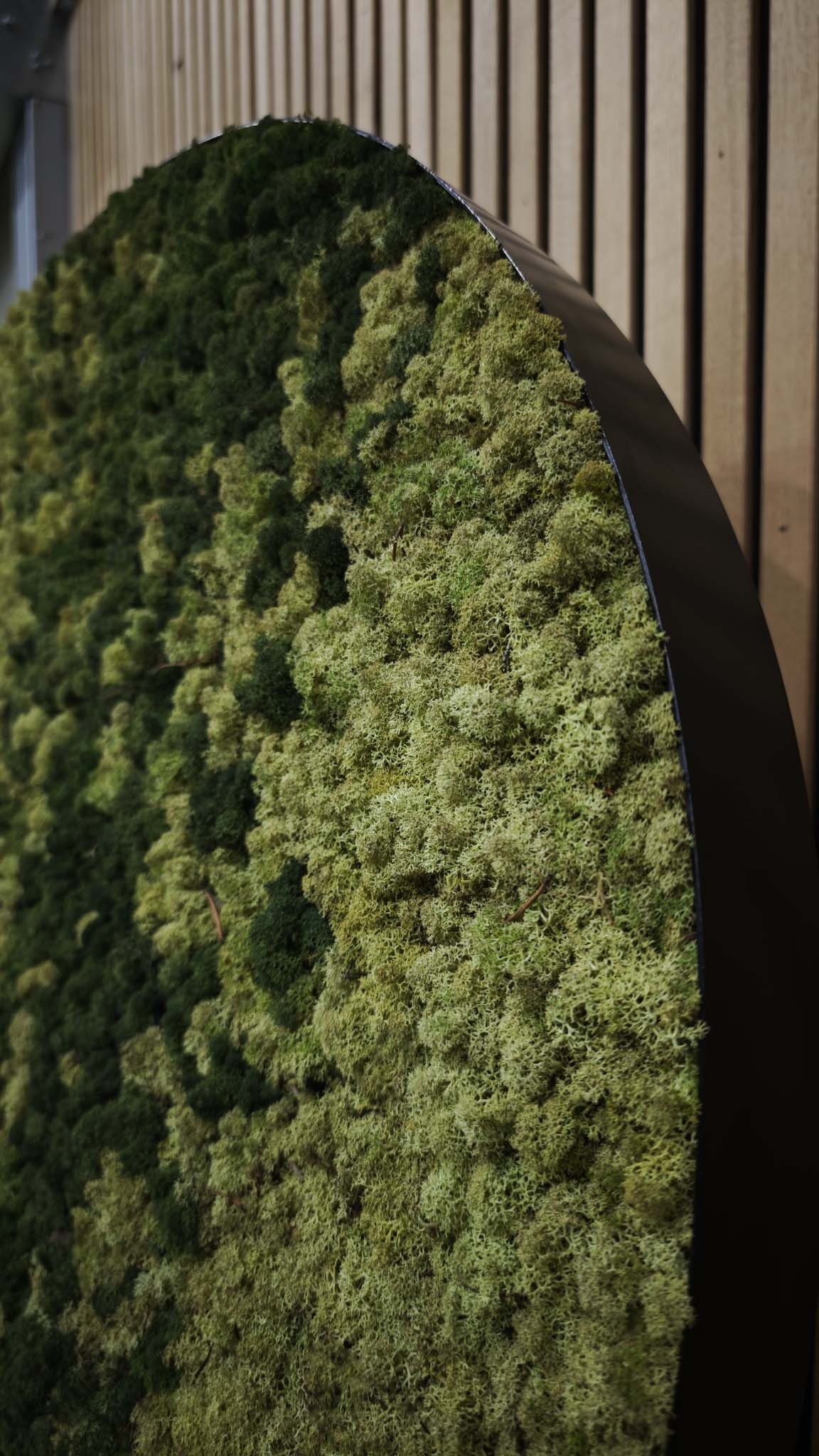 Die Mooszirkel schaffen eine einzigartige grüne Atmosphäre, die sich perfekt für den Einsatz in (Wohn-)Küchen/Empfangsbereichen/Büros oder über dem Sofa in Ihrem Zuhause eignet.