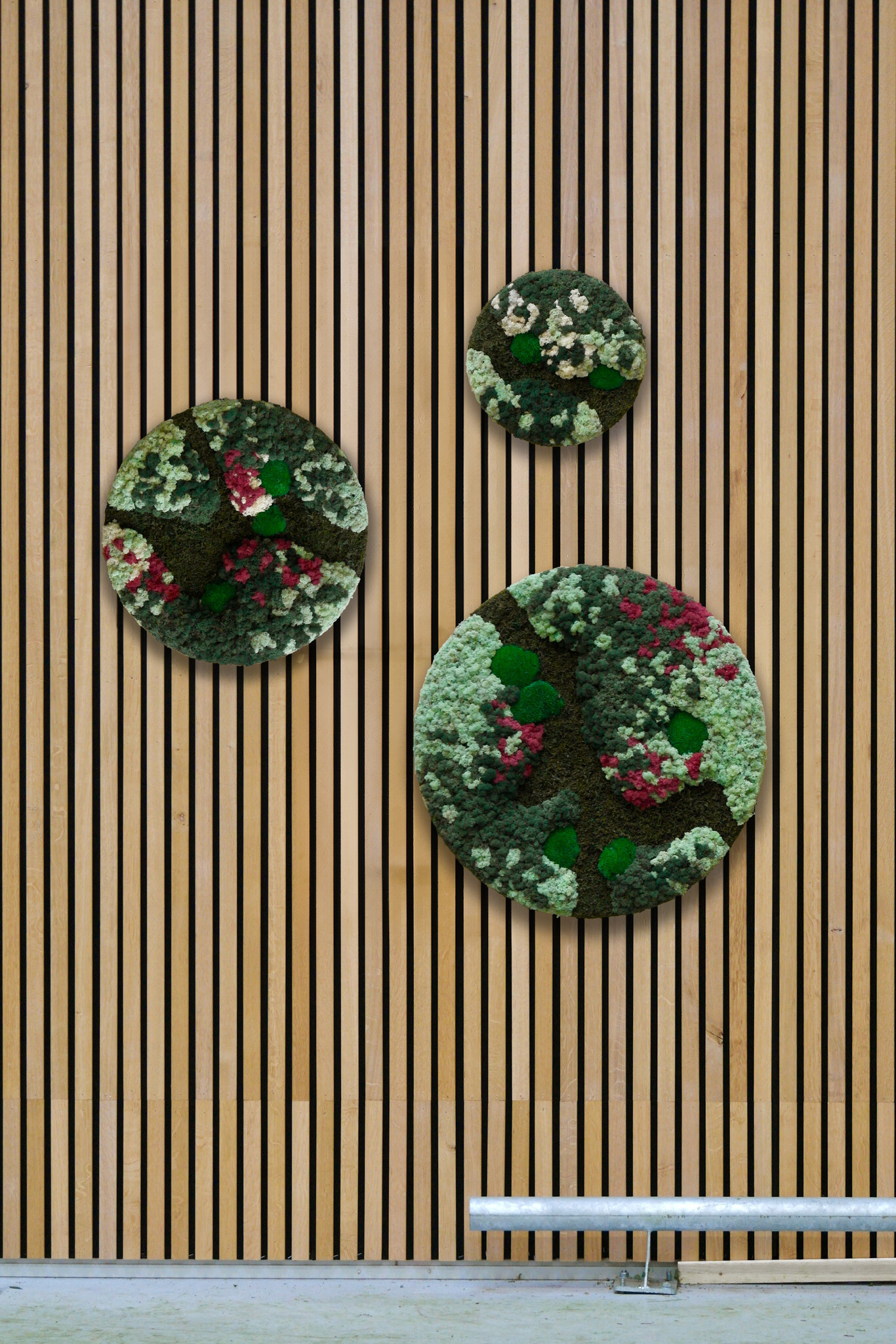 Die Mooszirkel schaffen eine einzigartige grüne Atmosphäre, die sich perfekt für den Einsatz in (Wohn-)Küchen/Empfangsbereichen/Büros oder über dem Sofa in Ihrem Zuhause eignet.