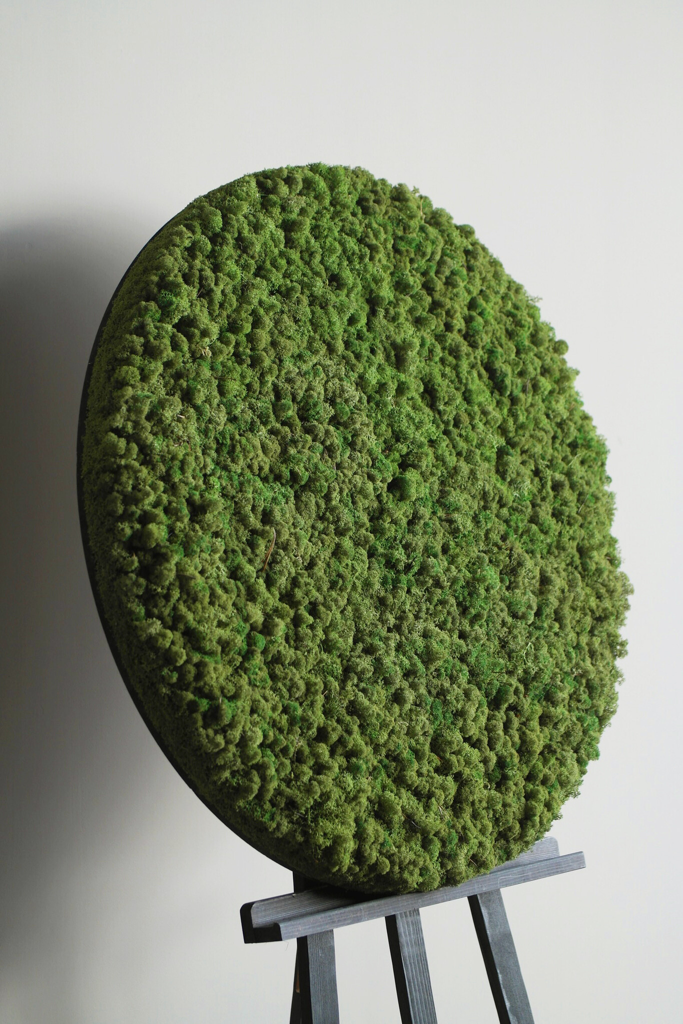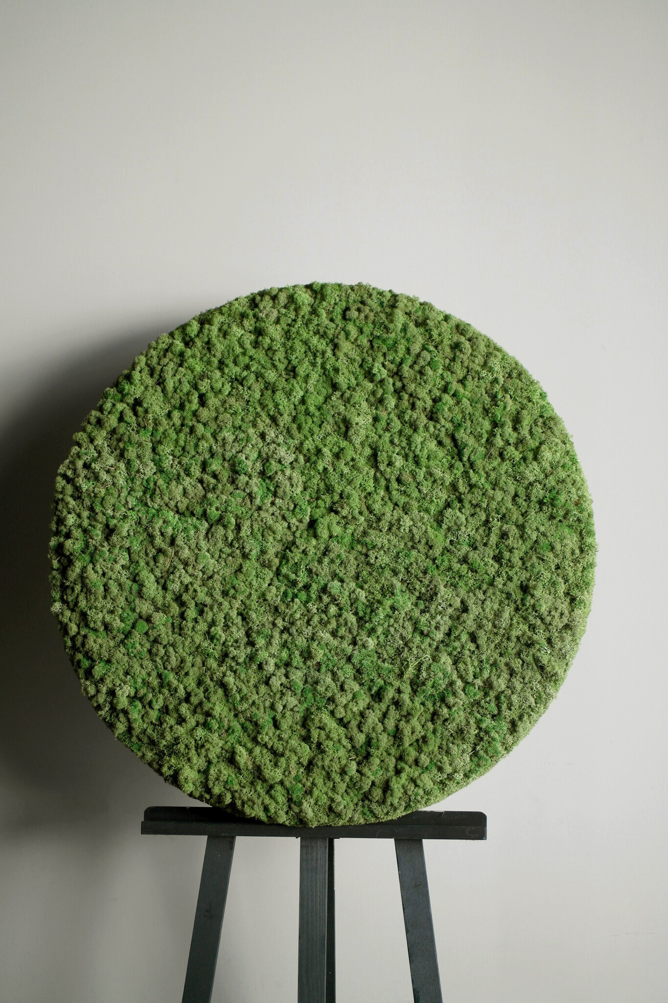Mit einem runden Moosbild wird ein schlichtes Interieur aufgelockert. Wussten Sie, dass unsere runden Mooszirkel mit Stahlrand auch in einem industriellen Interieur gut aussehen? Das weiche, natürliche Aussehen des Mooses ist eine wunderbare Ergänzung zu den häufig verwendeten "harten" Materialien wie Beton, Stahl und Glas.