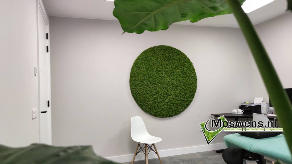 Ein Mooszirkel mit einem Durchmesser von 1,00 cm hat ein Gewicht von +/- 20-25 KG (einschließlich Stahlrahmen). Für eine optimale Schallabsorption können wir optional eine Akustikplatte (AkMOStico) in den Mooszirkel einbauen. Dies bietet 15% mehr Schallabsorption!
