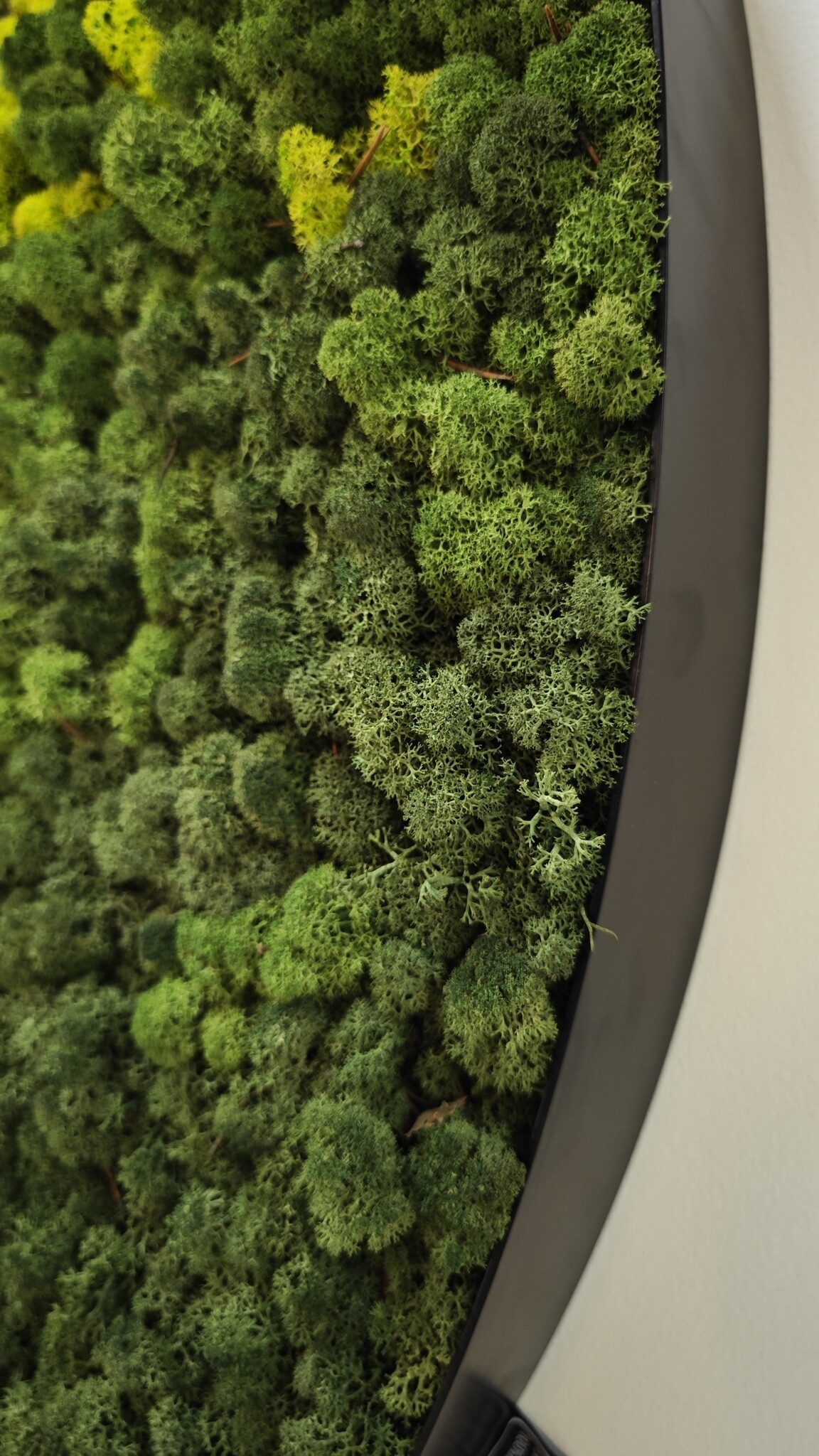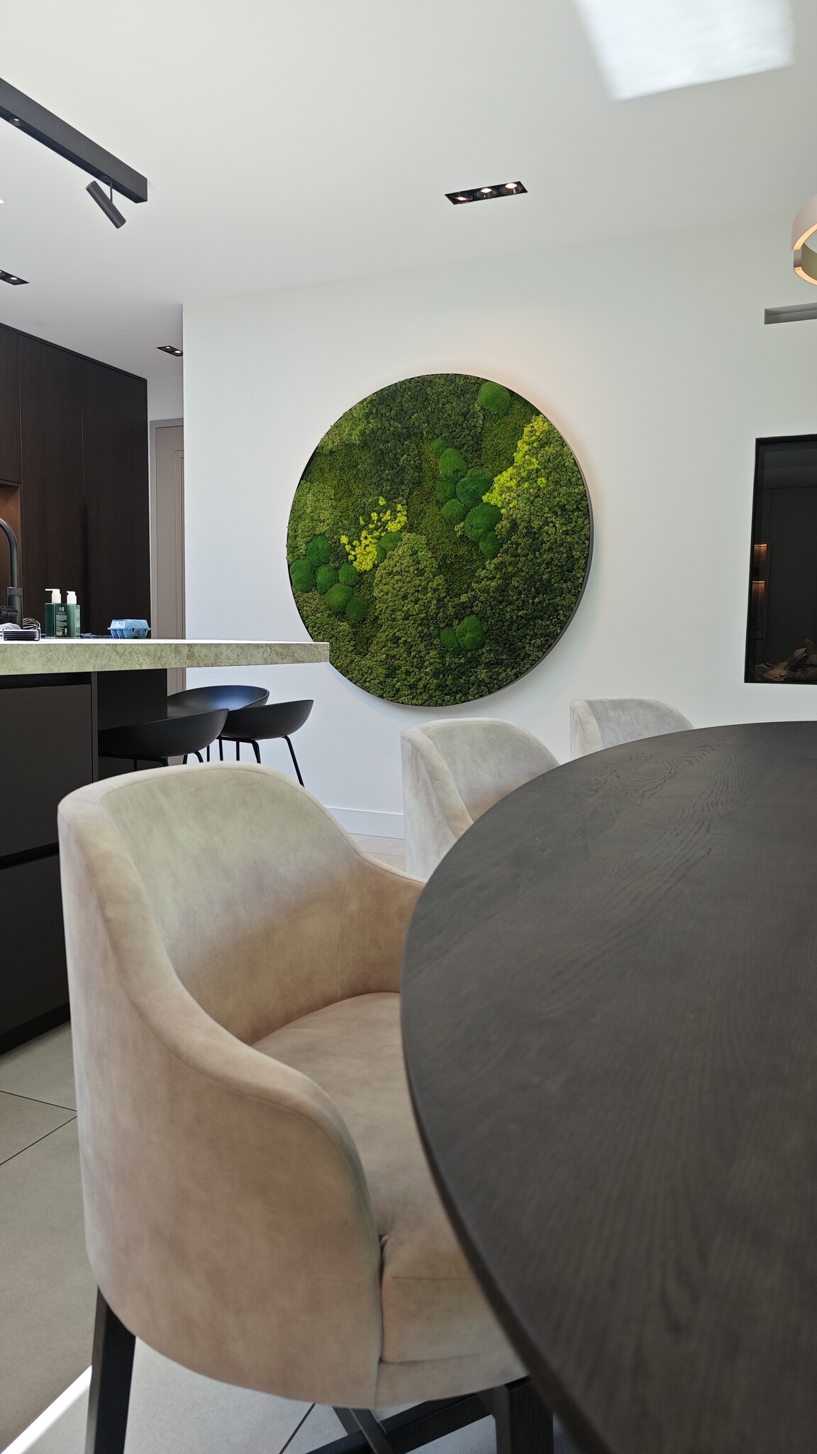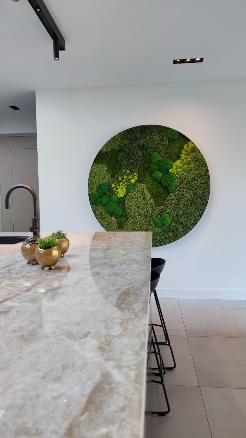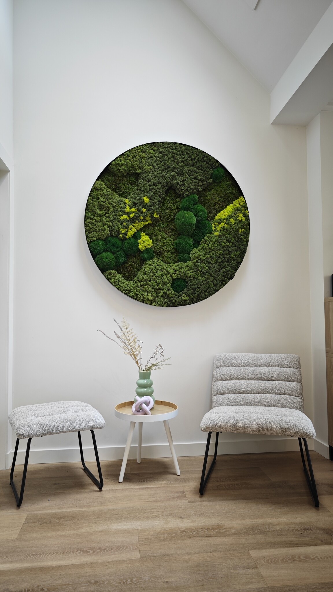 Die Mooskreise schaffen eine einzigartige grüne Atmosphäre, die sich perfekt für den Einsatz in (Wohn-)Küchen/Empfangsbereichen/Büros oder über dem Sofa in Ihrem Zuhause eignet.