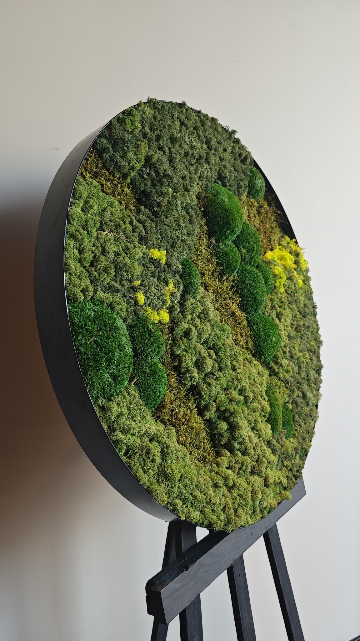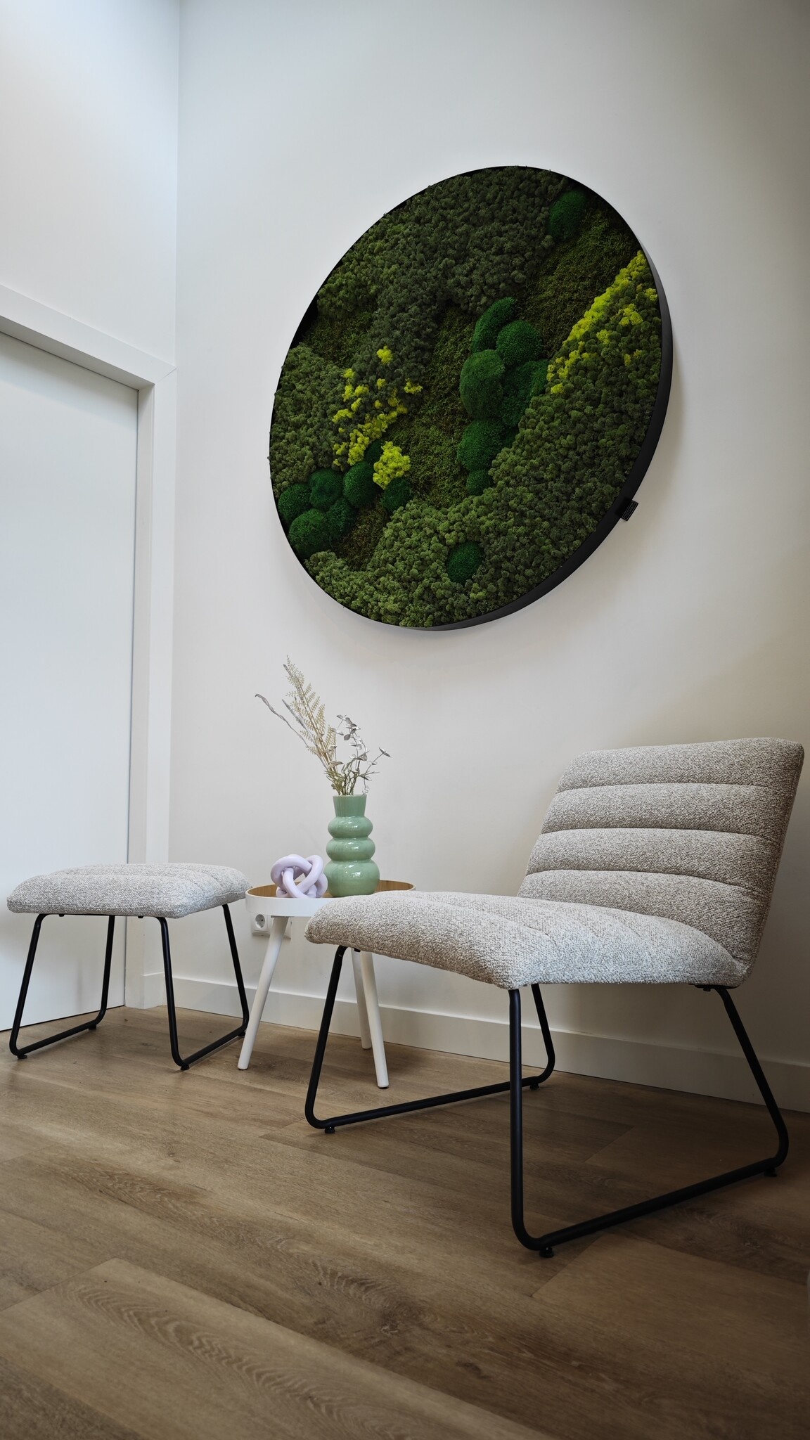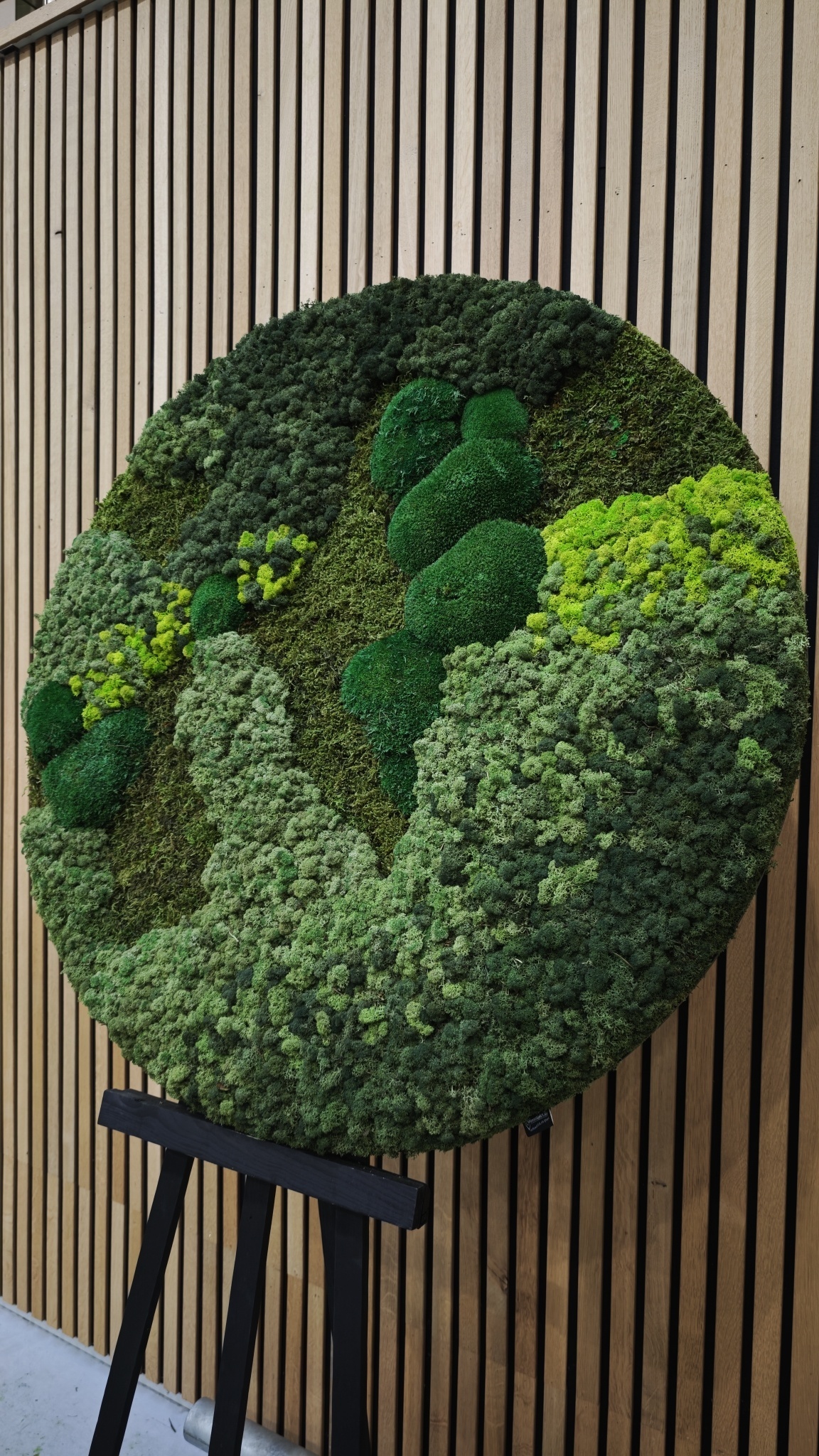 Die Mooskreise schaffen eine einzigartige grüne Atmosphäre, die sich perfekt für den Einsatz in (Wohn-)Küchen/Empfangsbereichen/Büros oder über dem Sofa in Ihrem Zuhause eignet.