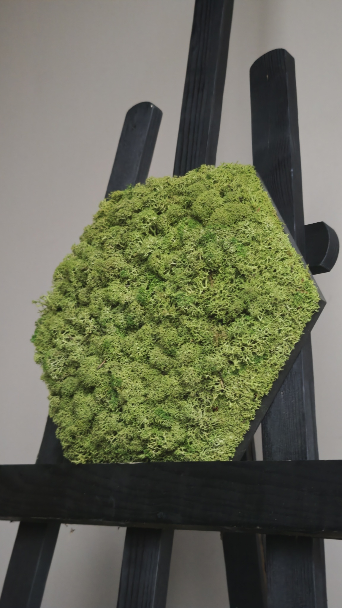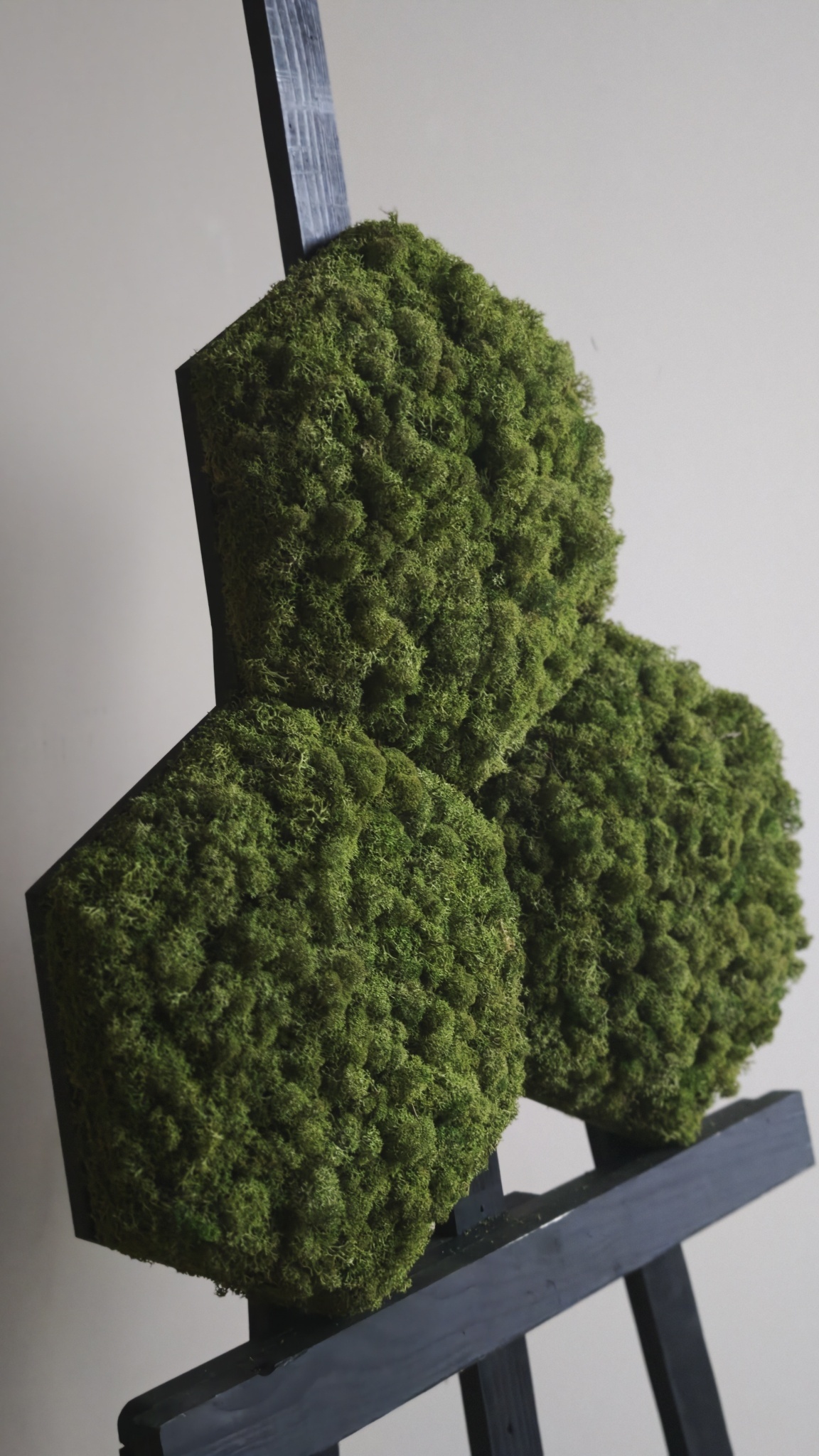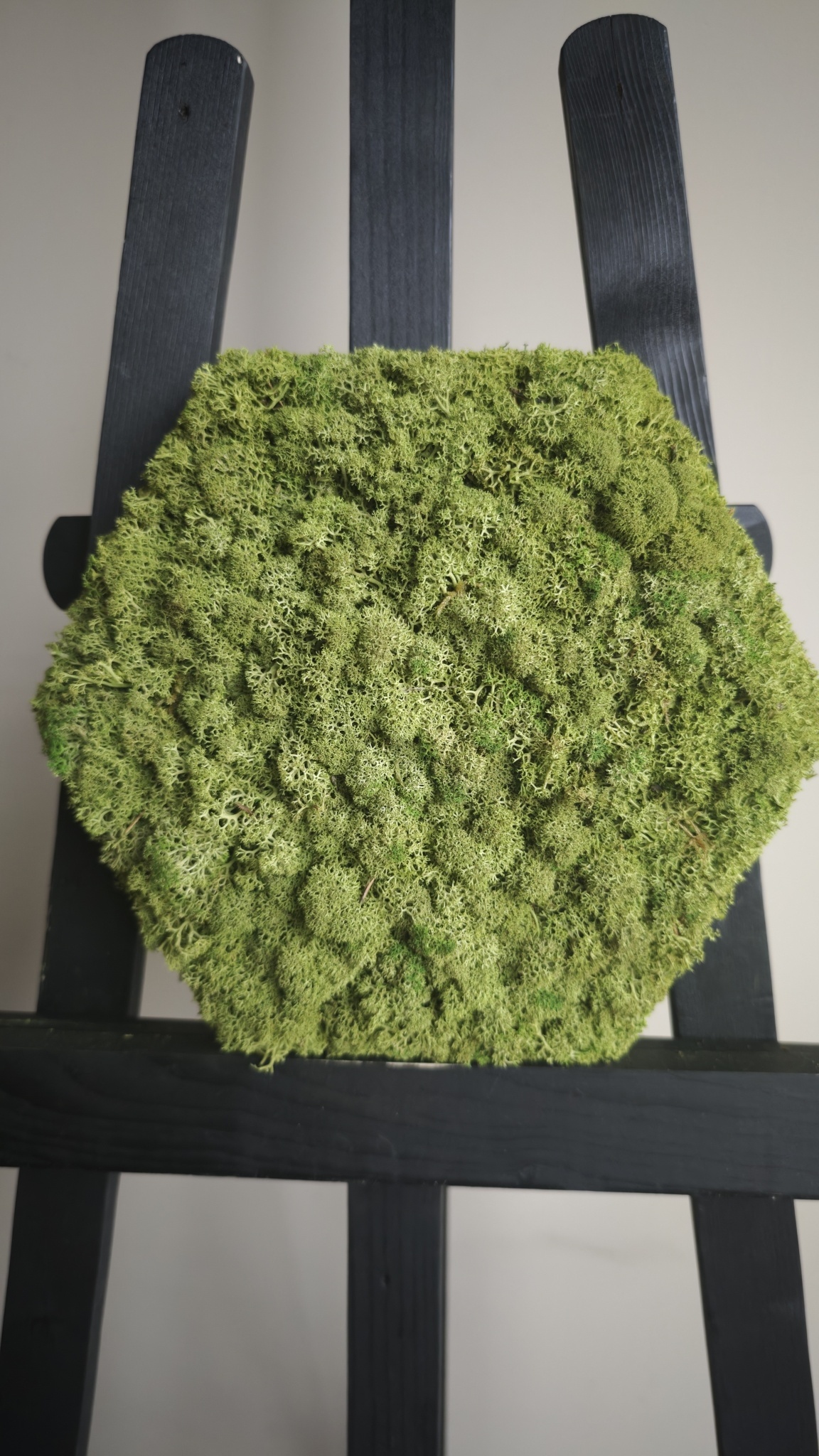 Auf der Abbildung ist das Muster eines Sechseckigen Moosbildes mit einer Größe von 100 cm zu sehen. Da es sich um ein Naturprodukt handelt, ist jedes Moosbild ein Unikat. Daher kann das Design des gekauften Moosbildes von dem ausgewählten Foto abweichen. Wünschen Sie eine andere Größe? Kontaktieren Sie uns gerne unter [email protected]