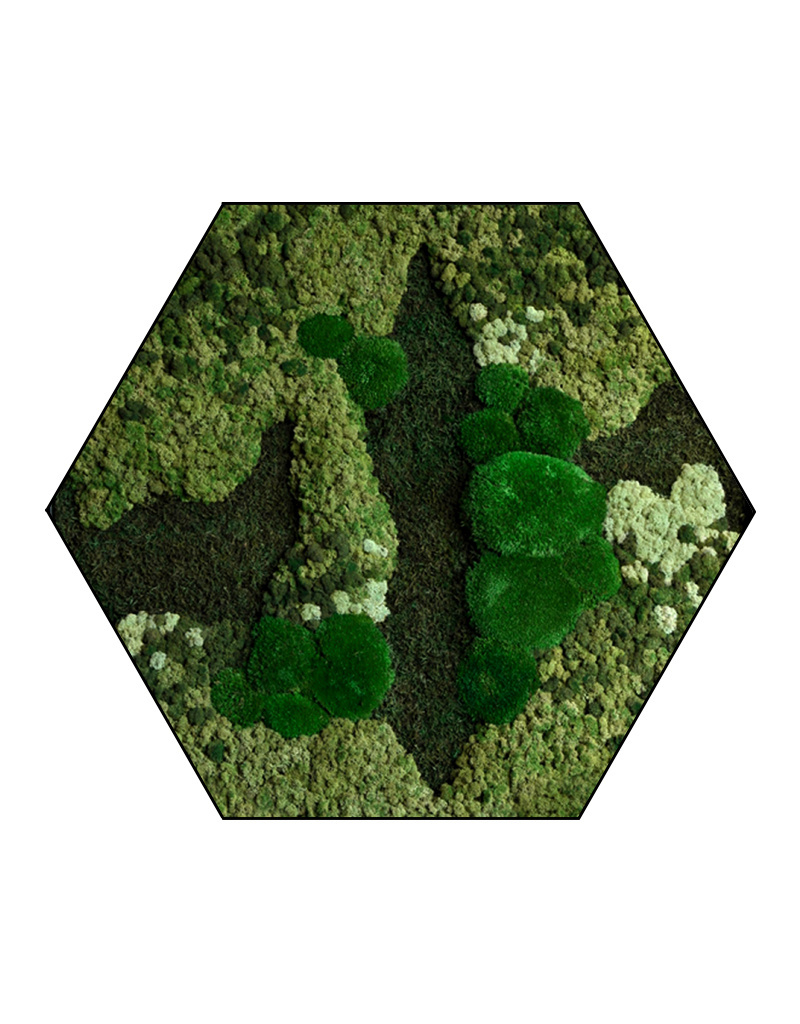Auf der Abbildung ist das Muster eines Sechseckigen Moosbildes mit einer Größe von 100 cm zu sehen. Da es sich um ein Naturprodukt handelt, ist jedes Moosbild ein Unikat. Daher kann das Design des gekauften Moosbildes von dem ausgewählten Foto abweichen. Wünschen Sie eine andere Größe? Kontaktieren Sie uns gerne unter [email protected]