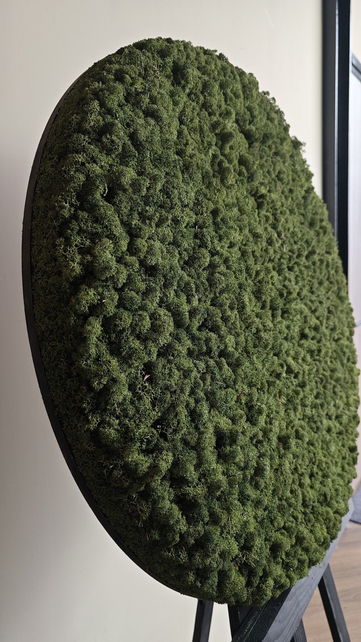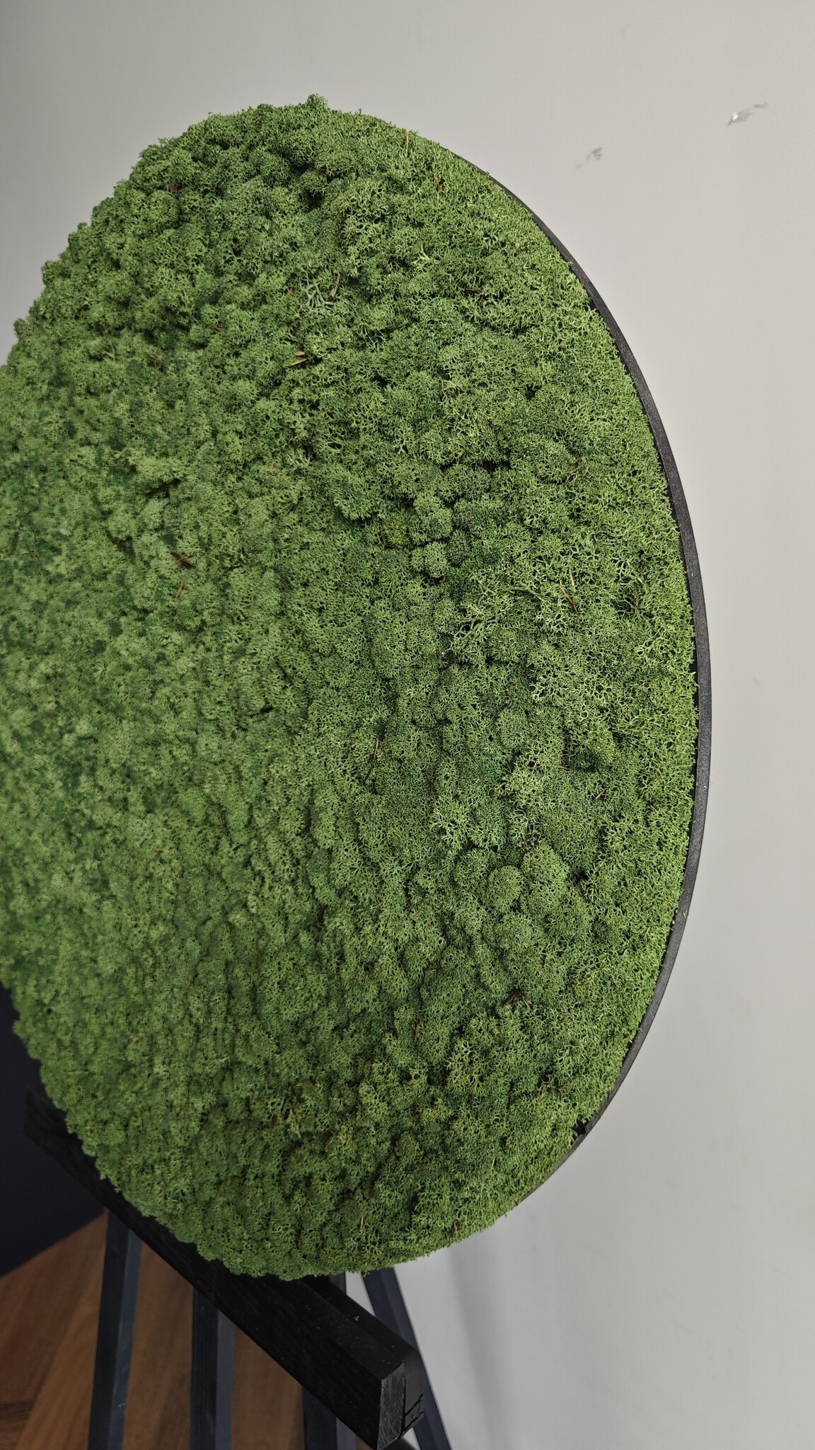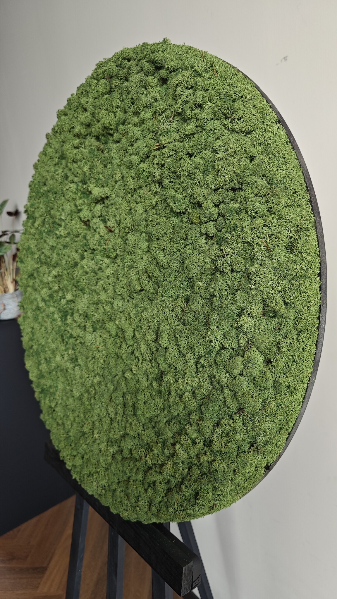 Moswens OUTLET Moosbild rund Dunkelgrün Rentiermoos 80 cm schwarze Kante (VERKAUFT)