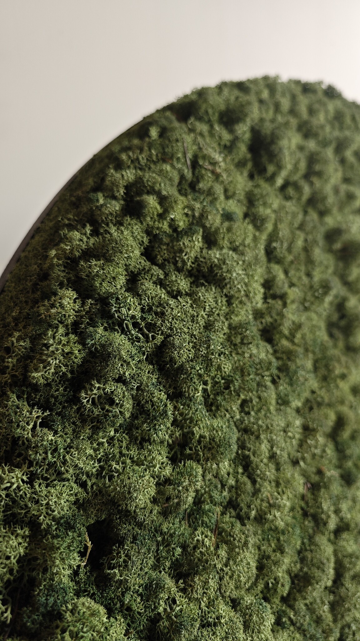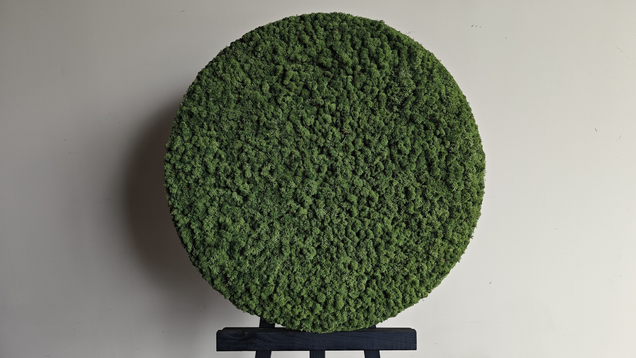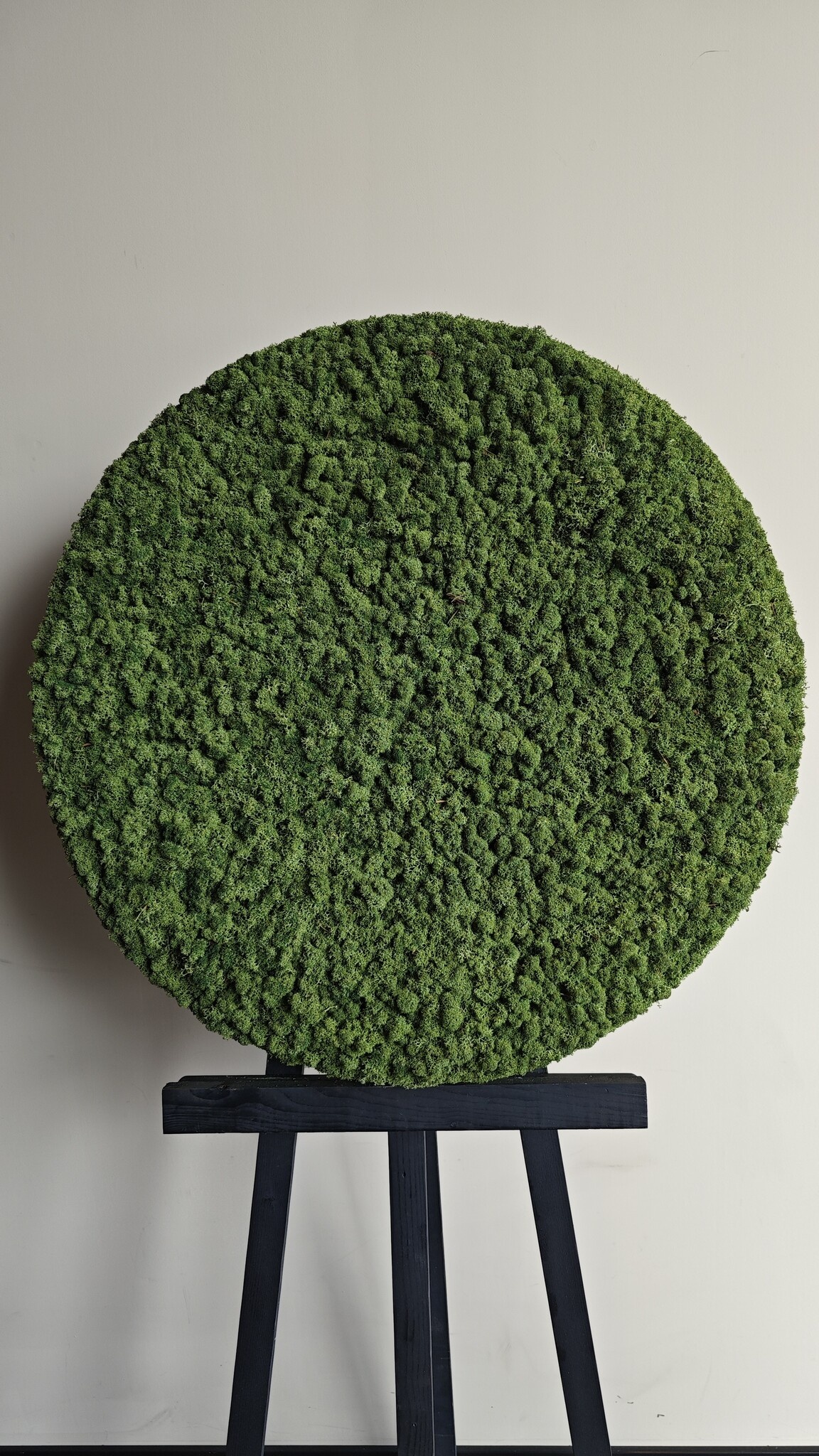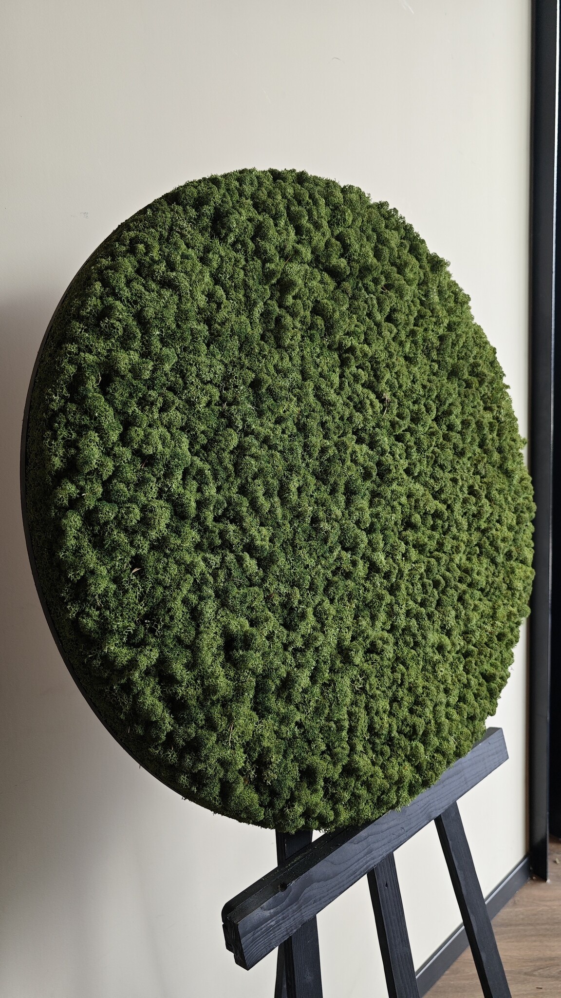 Moswens OUTLET Moosbild rund Dunkelgrün Rentiermoos 80 cm schwarze Kante (VERKAUFT)
