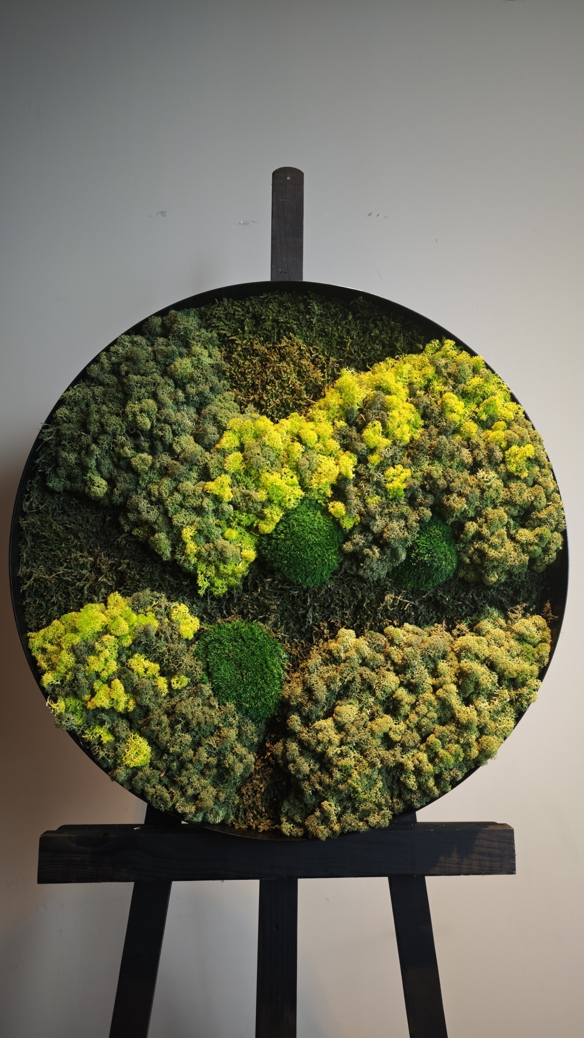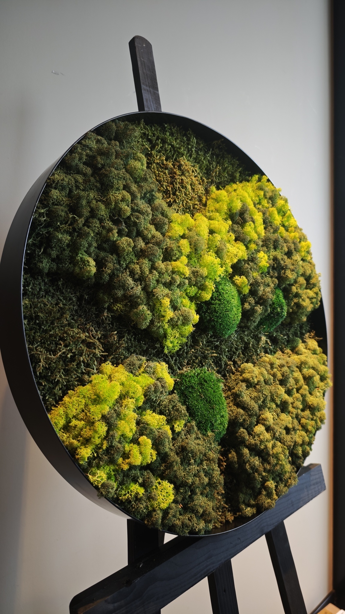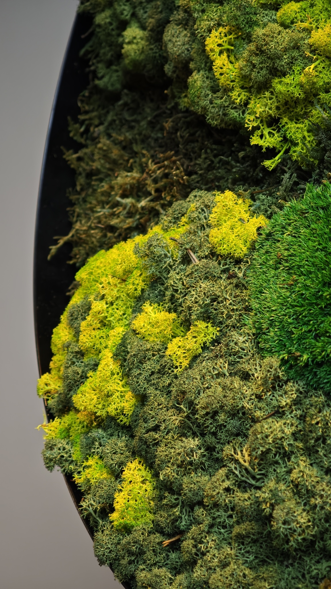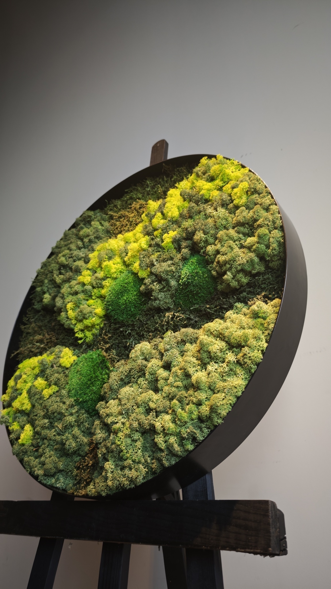 OUTLET Moosbild rund Mix 60cm mit schwarzem Stahlrand (VERKAUFT)