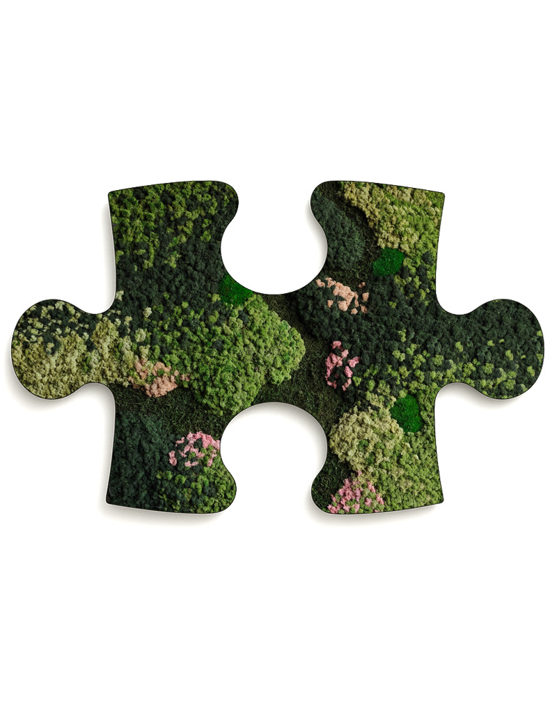Die Moospuzzle bringt lebendige Natürlichkeit und verspielte Eleganz in jeden Raum. Vom Kinderzimmer bis ins Wohnzimmer. Auch in Kindergärten oder als kreatives Geschenk ist sie ein echter Blickfang. Für Unternehmen ist die Moospuzzle mehr als Dekoration: Sie steht symbolisch für Zusammenarbeit. Wenn jede Abteilung ihr eigenes Puzzlestück beisteuert, entsteht ein gemeinsames, starkes Ganzes. Ein sichtbares Zeichen für Teamgeist und Verbundenheit.