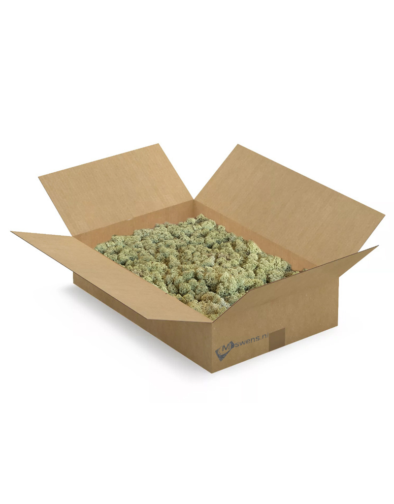 Diese 60x40x21 cm große Schachtel (2 Schichten) enthält +/- 3 KG Rentiermoos. Dieses Rentiermoos eignet sich hervorragend für die Herstellung von ca. 0,4 m² Mooswänden, Moosbildern, Blumenarrangements und anderen dekorativen Zwecken. Für 1 m² benötigen Sie 2-3 Kartons, je nachdem, wie genau/selektiv Sie arbeiten. Rentiermoos ist in vielen verschiedenen Farben erhältlich. Sie können die Farben und verschiedenen Moosarten auch miteinander kombinieren und so Ihren eigenen Moosmix herstellen.