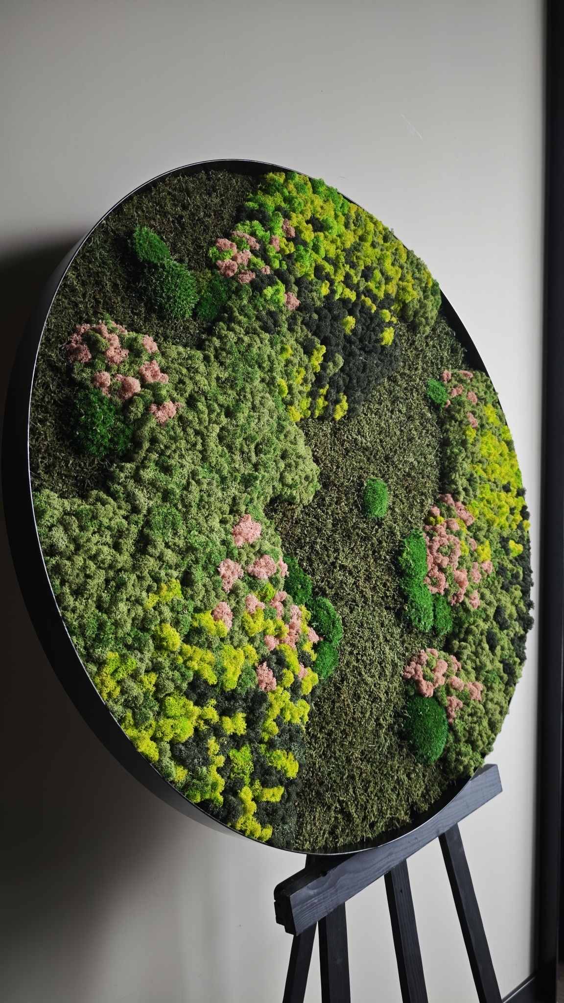 Moosbild Evelae hat eine frische und stilvolle Ausstrahlung. Dieses Moosbild besteht aus verschiedenen Arten von konserviertem Moos, die zusammen ein abwechslungsreiches und natürliches Gesamtbild ergeben. Die rosa Akzente in Kombination mit dem Grün verleihen dem Bild eine erfrischende und verspielte Wirkung.