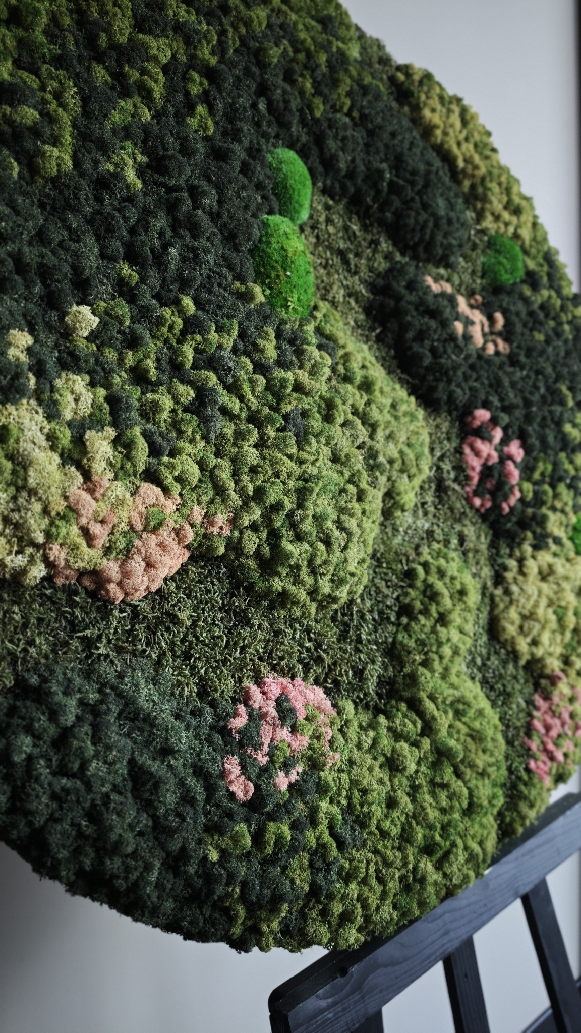 Die Moosvariante FLOW besteht aus einem Moosmix mit einer natürlichen, flussähnlichen Struktur. In diesem Moosbild bildet dunkles Flachmoos ein Tal, das mit Rentiermoos in den Farben Dimidium, Pine und Vetus zusammenläuft. Als Akzente sind zwei sanfte Rosatöne eingearbeitet, Rentiermoos Rozea und lachsfarbiges Danae. Kugelmoos ist dezent integriert und sorgt für zusätzliche Tiefe und Struktur. Ein eleganter Moosstil mit einer feinen roséfarbenen Note, ein echter Blickfang für jeden Raum.