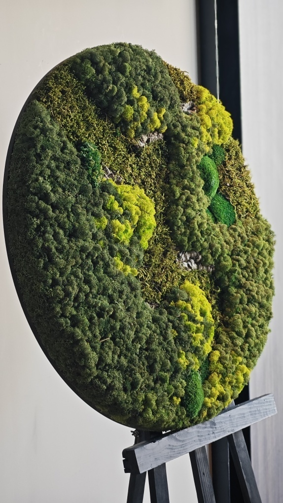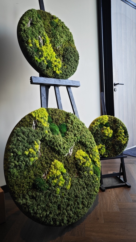 Die Mooszirkel schaffen eine einzigartige grüne Atmosphäre, die sich perfekt für den Einsatz in (Wohn-)Küchen/Empfangsbereichen/Büros oder über dem Sofa in Ihrem Zuhause eignet.